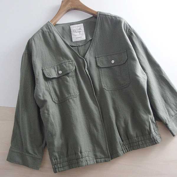 春物 ●studio CLIP● スタジオクリップ 綿麻ノーカラージャケット M ♪