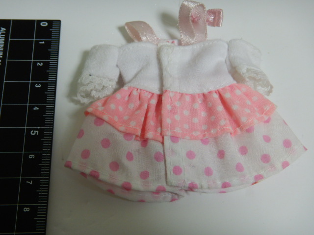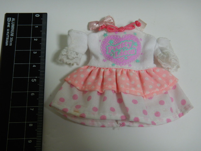 リカちゃん、ブライスが着用した場合、ワンピースになります。ジェニーちゃん、momokoが着用した場合はトップスになります。中古品ですのでご理解いただきますようお願いします。