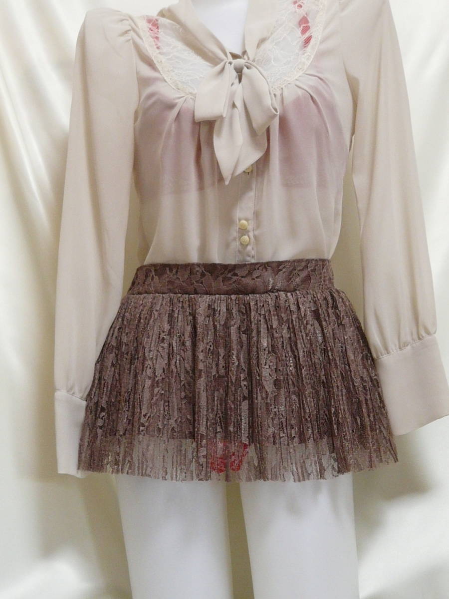 ♪♪こげ茶色の総レースプリーツの超マイクロミニ☆短い裏地^^♪♪