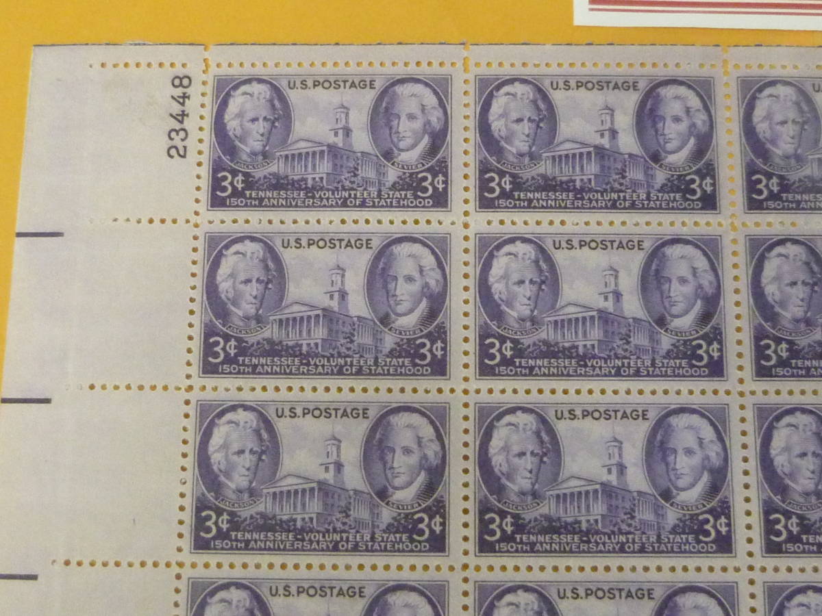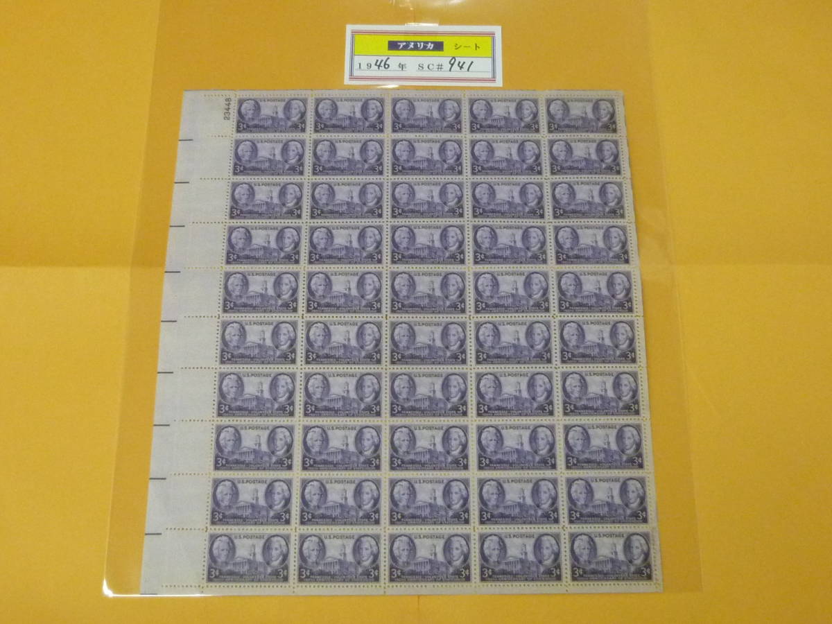 22 P アメリカ切手 1946年 SC#941 テネシー州150年 3c 50面シート 未使用NH、少々目打ち離れ、角折れ有