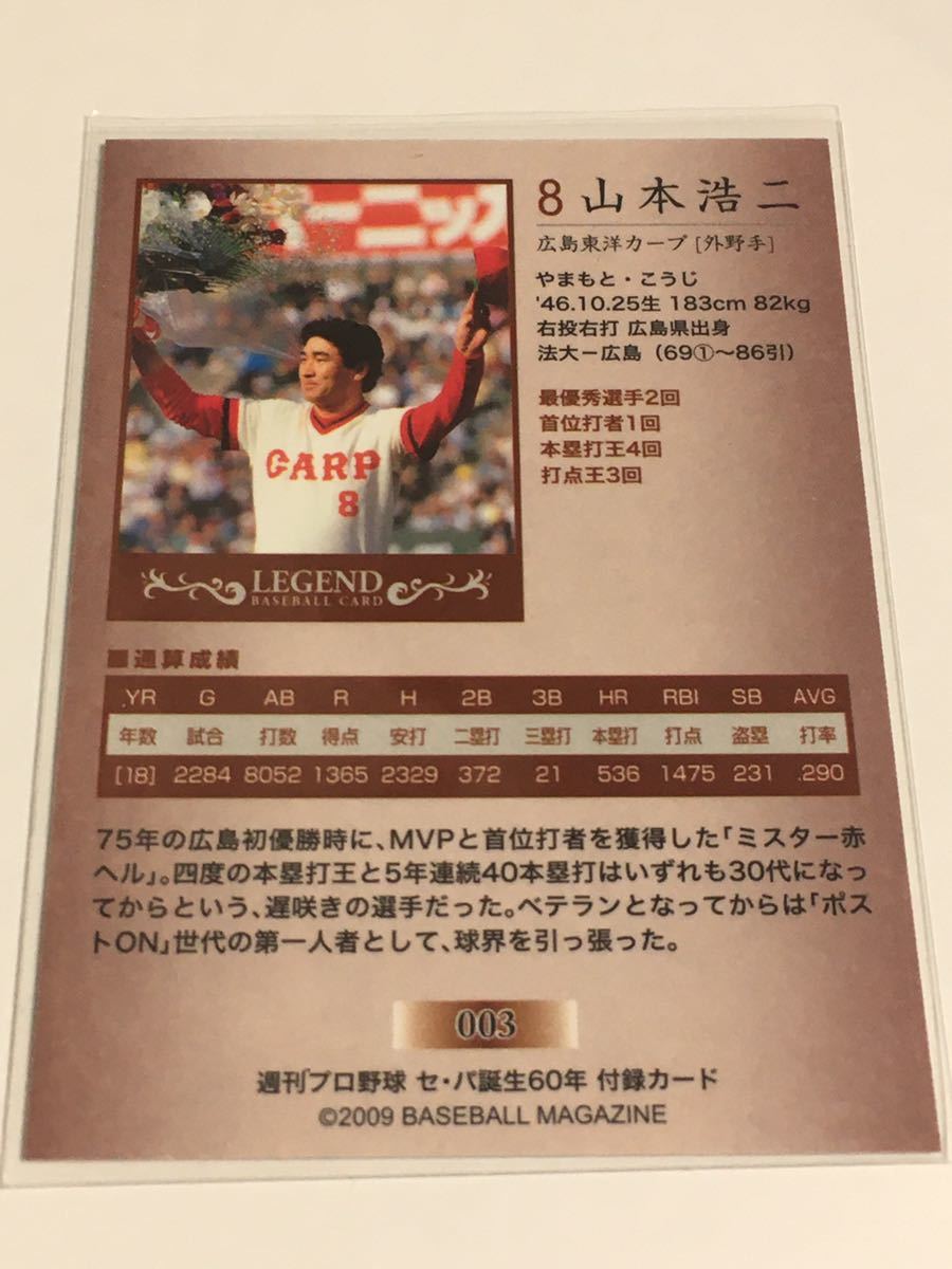 広島 山本浩二 3 週刊プロ野球 セパ誕生60周年 付録カード BBM2009