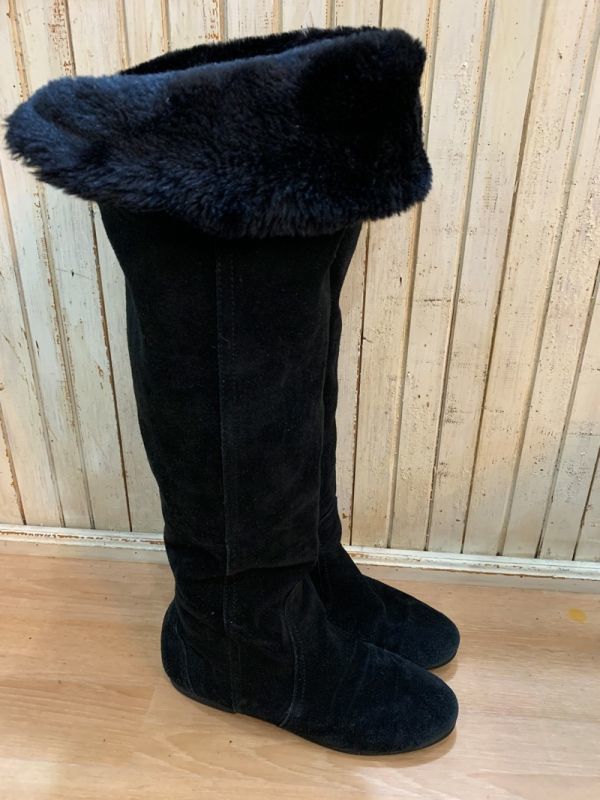 2200★X-girl/エックスガール スウェード×ファーロングブーツ ブラック レディースブーツ 靴 秋冬 USED ★
