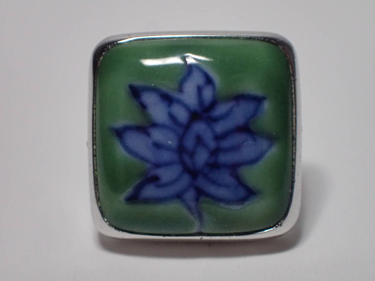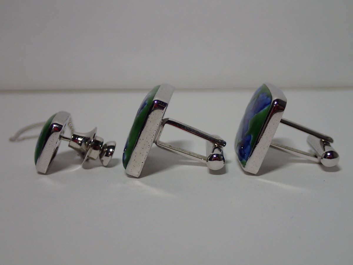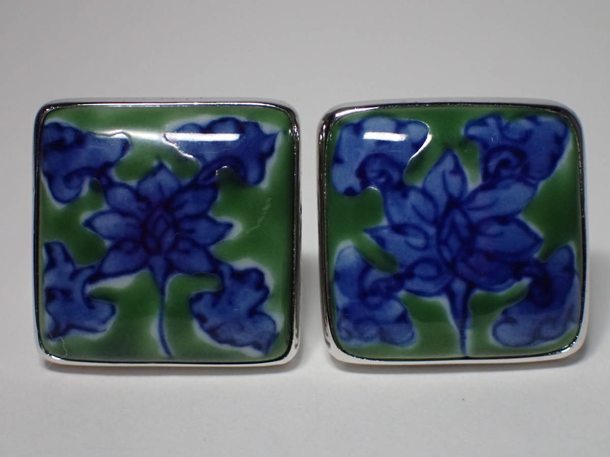 源右衛門窯 源コレクション gen collection by Tsunekawa タイタック カフス 箱あり 花 ブルー×グリーン×シルバー カフスボタン 銀