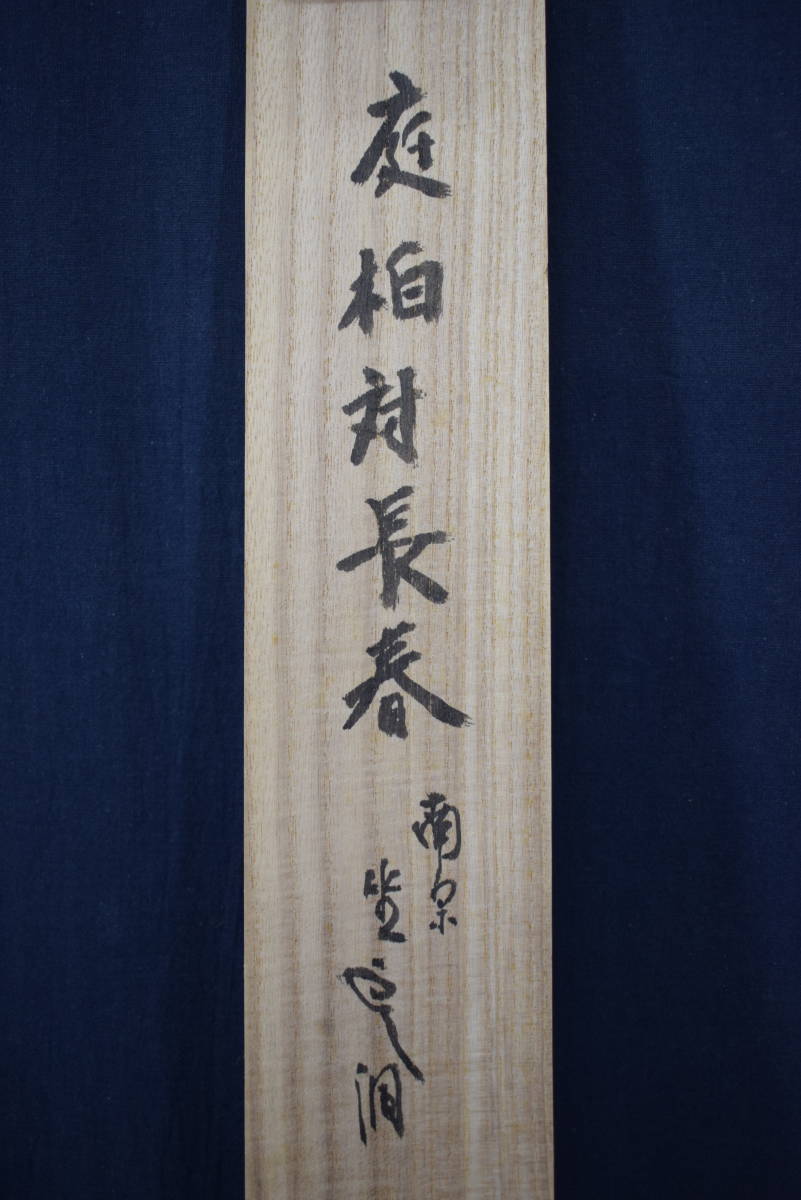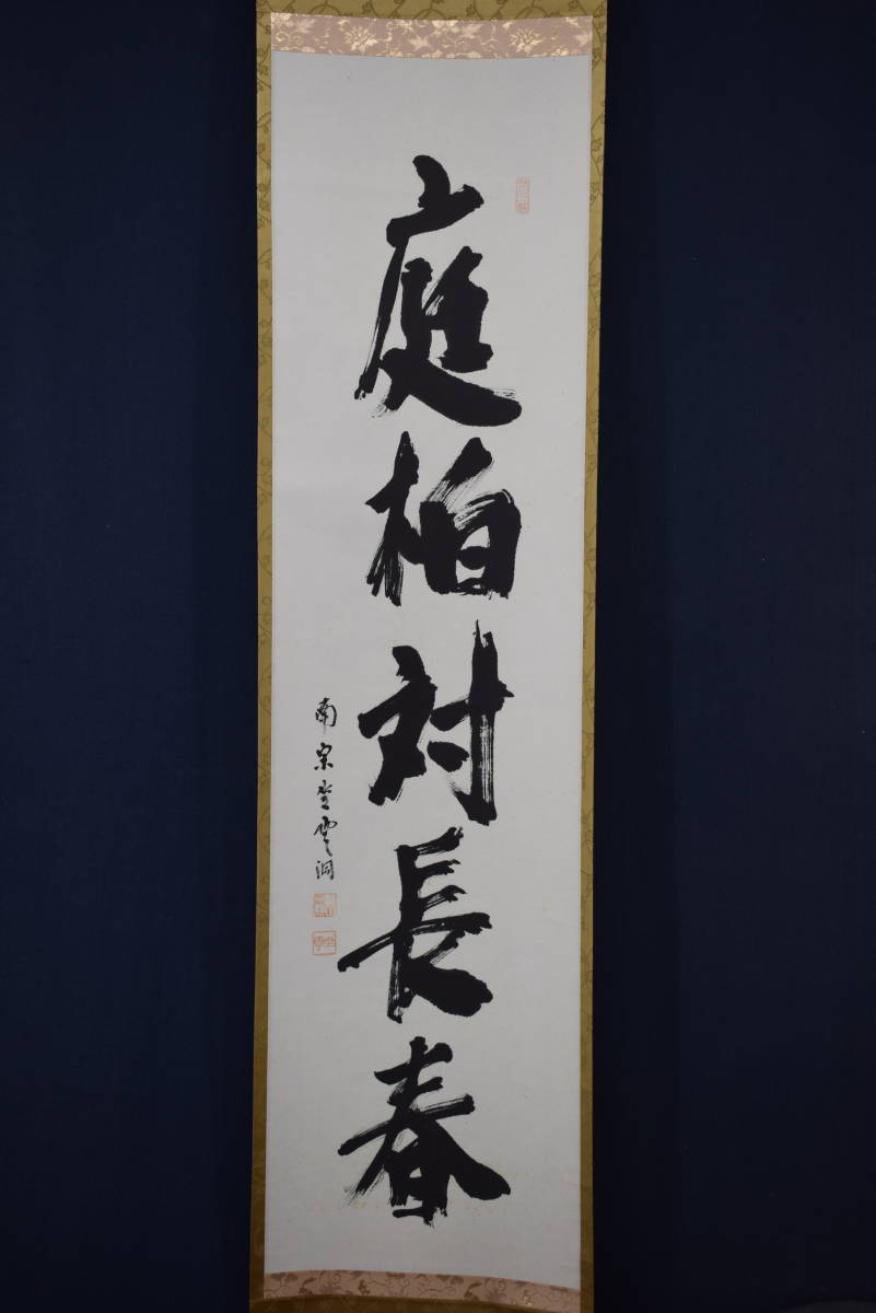 真作/大徳寺派/南宗寺坐雲洞/佐藤一耕/一行書/庭柏対長春/茶道具/茶掛/禅語//掛軸☆宝船☆Y-548 JM