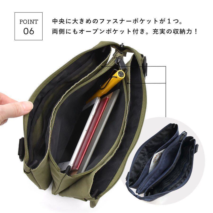 使いやすいサイズ感と実用性を兼ね備えた、撥水・軽量・多機能ショルダーバッグ。