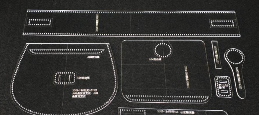 型に沿って革をカットし縫ってください。型はアクリル製ですので何度もご使用になれます。