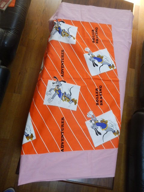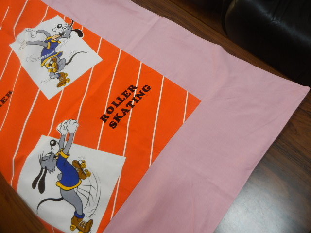 ビンテージ 布団生地 表地 【掛け布団 仕立て前】 日本製 185cmx135cm 30年前 レトロ アメコミ調 ファンシー 寝具 手芸 材料 まとめて 可愛