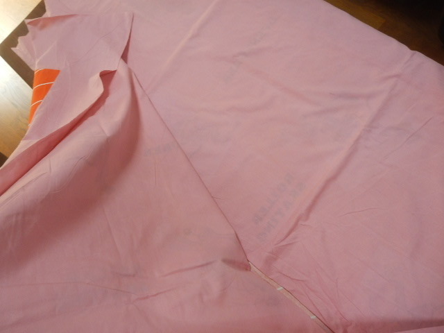 ※ 表地(絵柄・100cmx145cm)、裏地(薄目なピンク)ともに綿100%となります。
