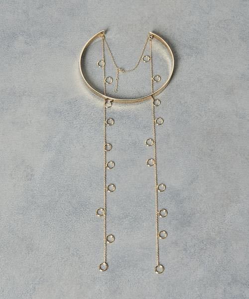 ビッグシェイプのサークルにリングが連なる繊細なチェーンを組み合わせた、<ARME DE L’AMOUR(アルム デ ラムール)>のネックレス。