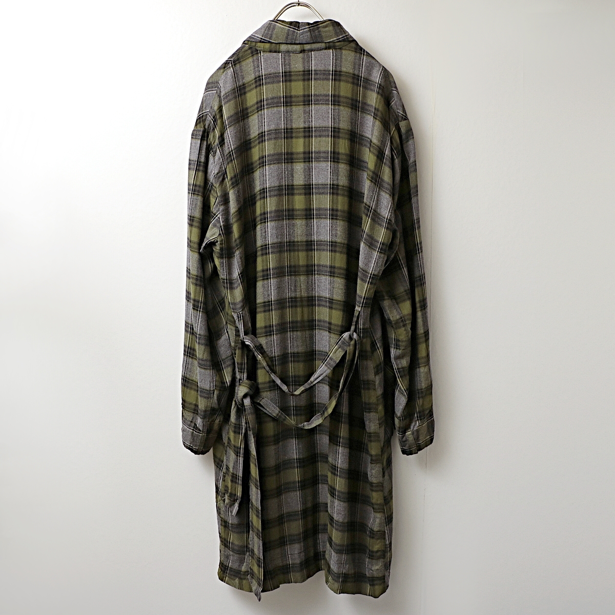 ブロックチェック 柄 ダークカラー ガウンコート 古着 used