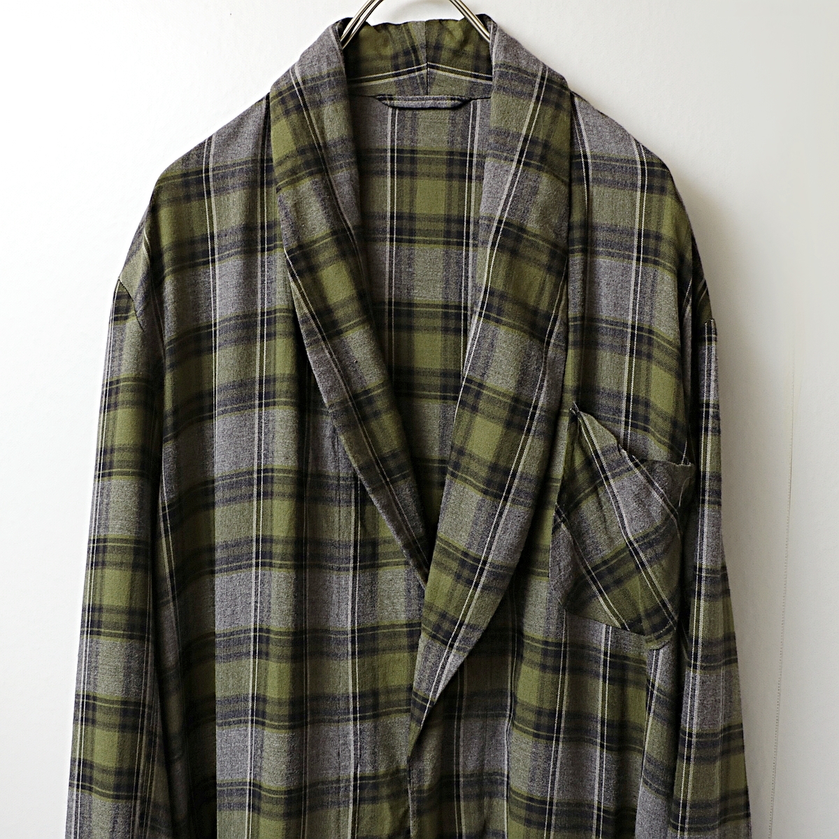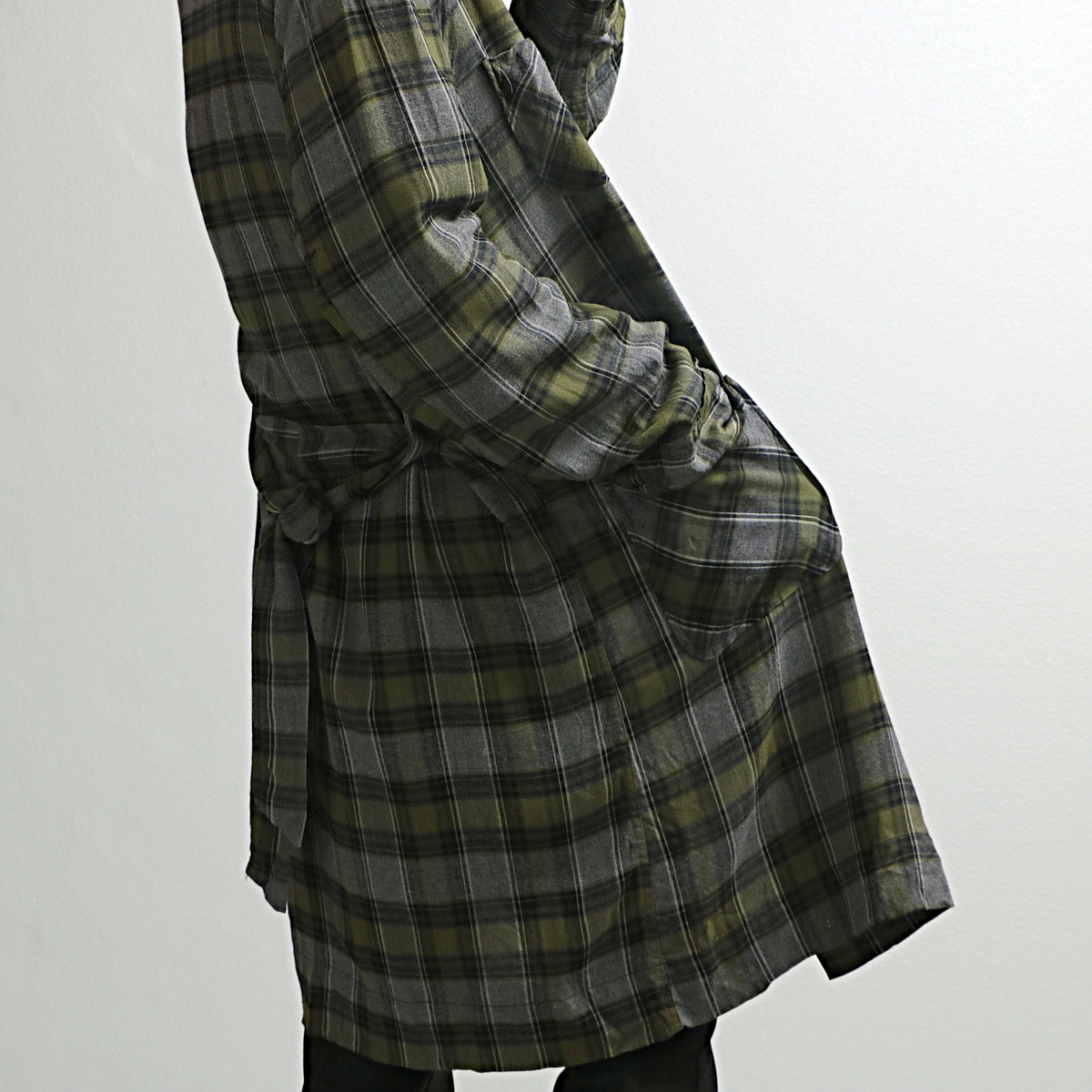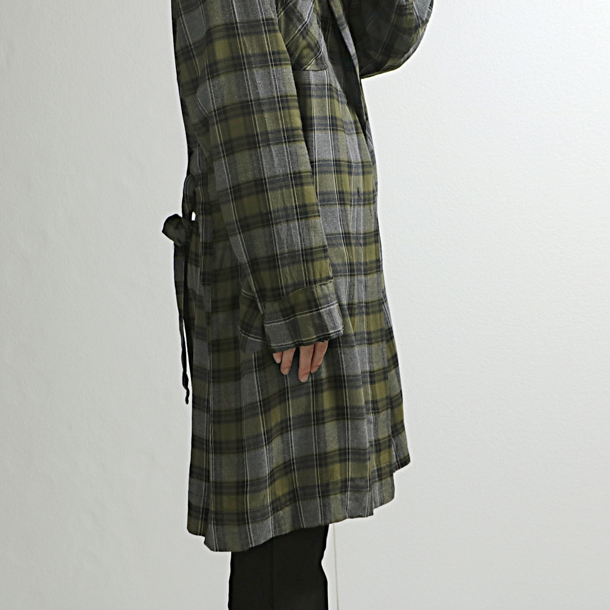 ブロックチェック 柄 ダークカラー ガウンコート 古着 used