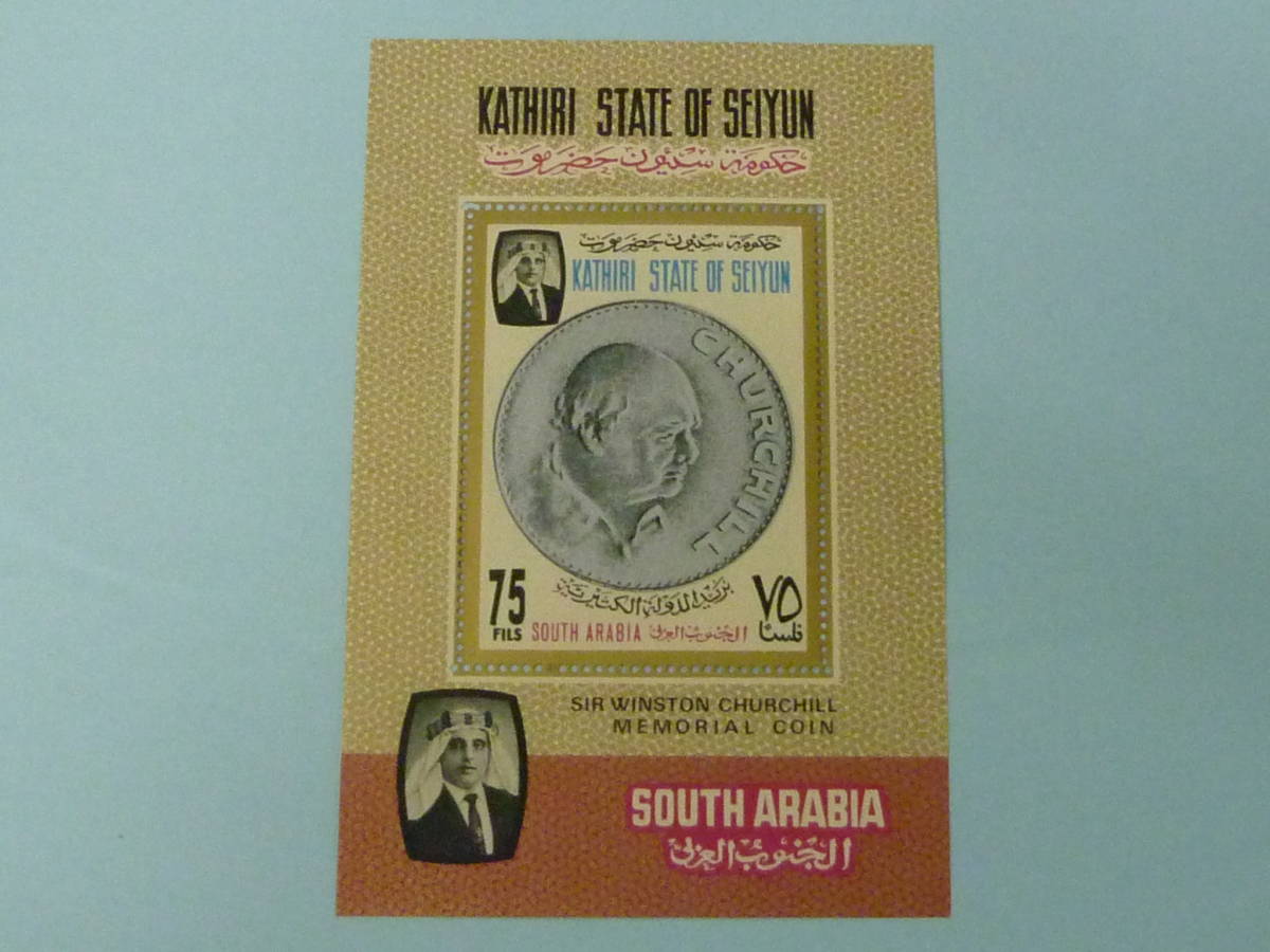 21LA P №66a アデン(SEIYUN)切手 1967年 MI#123 チャーチル 有目打 小型シート 未使用NH・VF ※説明欄必読