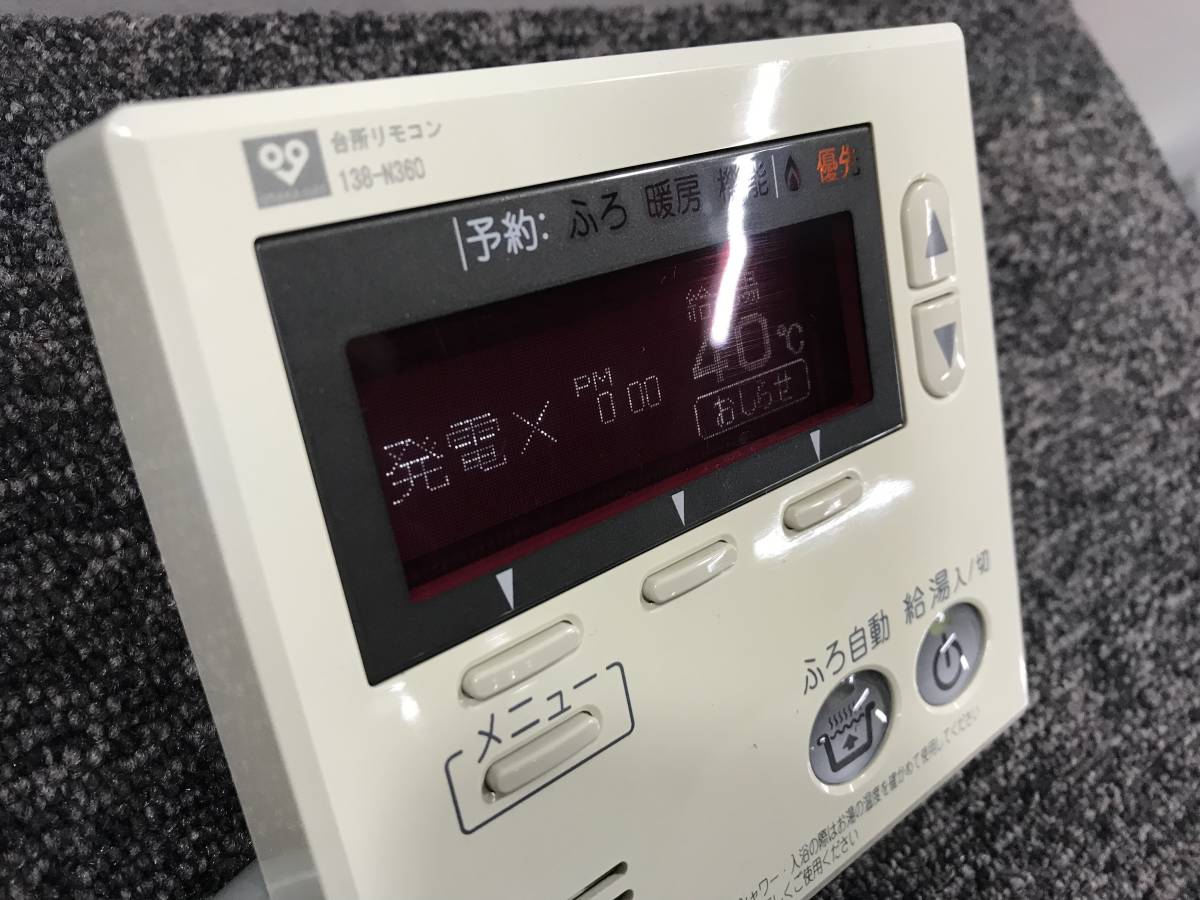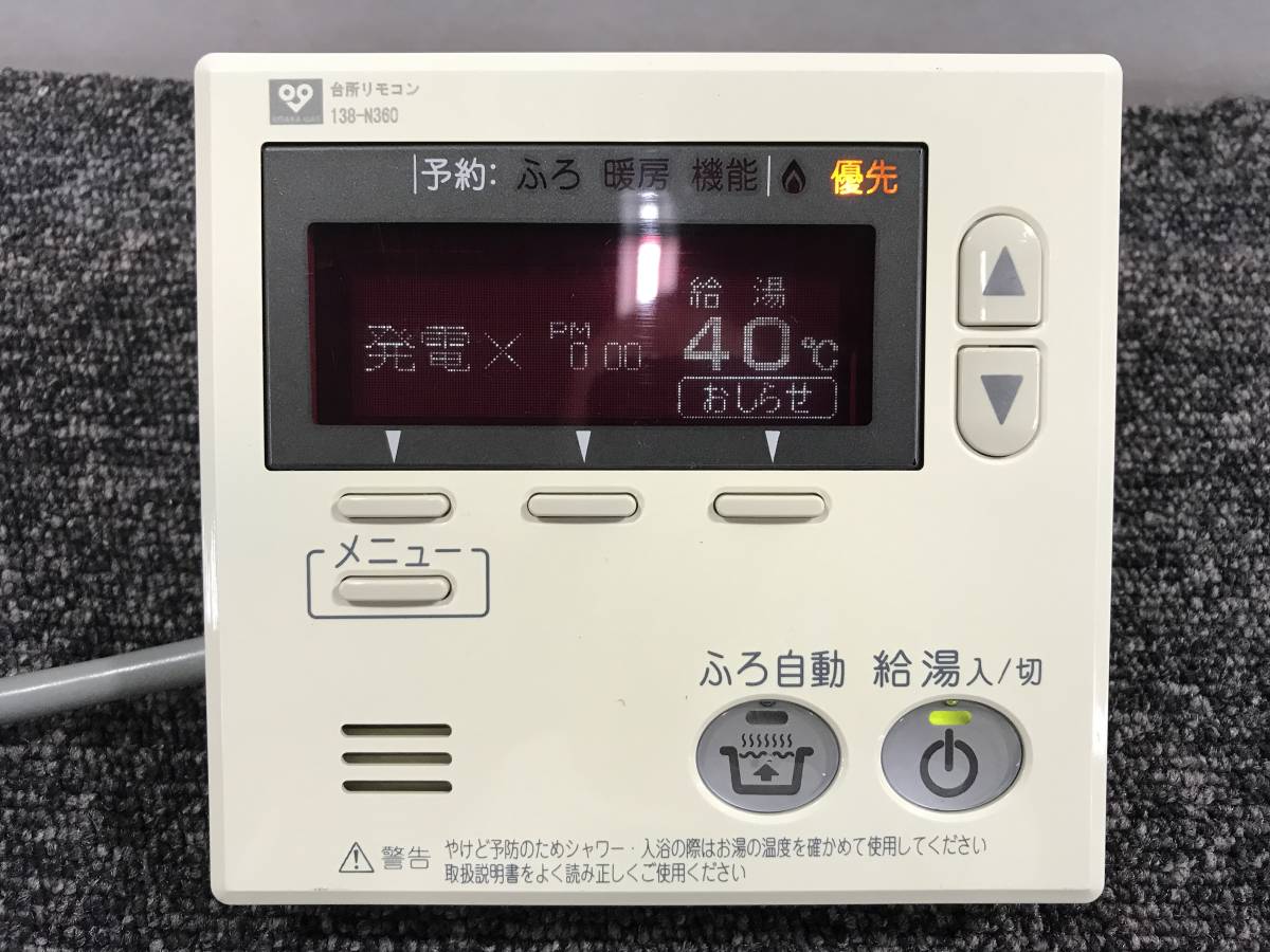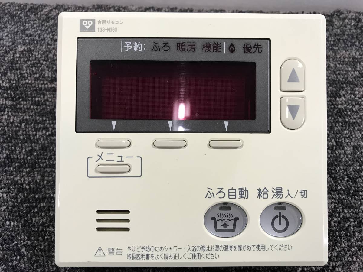 【送料無料】N-71●美品◆リサイクル◆給湯器用リモコン 138-N360 大阪ガス エコウィル用 給湯機用リモコン 簡易動作確認済み