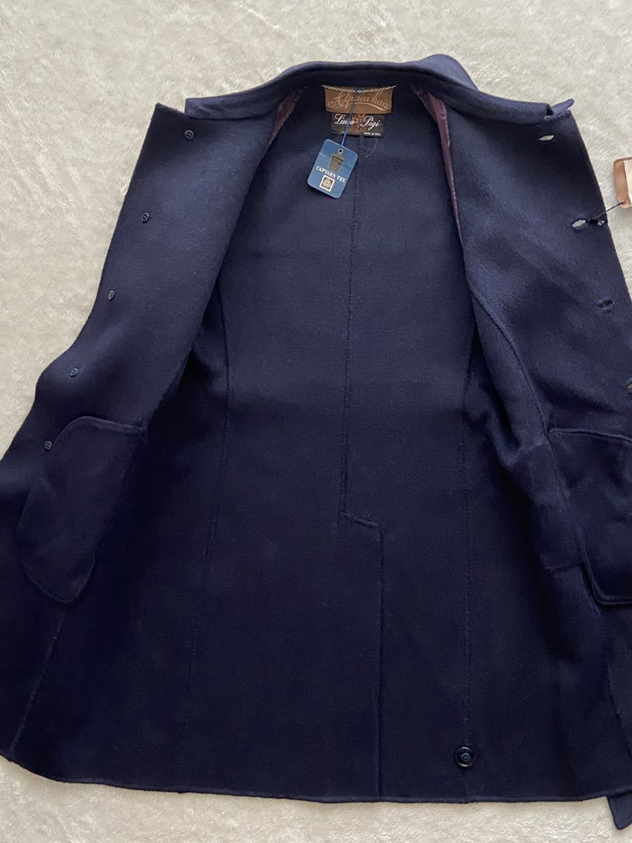 デッドストック Line Tigi ALpaca Hair size46 イタリア製ステンカラーコート ダブルフェイス ネイビー アルパカ ネイビー メンズ