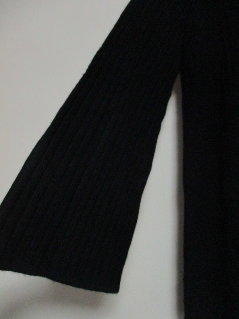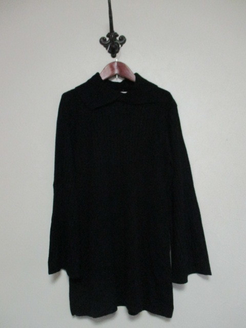 商品紹介 | 黒のニットチュニックです。 重なった大きめのエリがデザインのポイントになっています。 上半身と袖はリブ素材で、 袖はAライン(フレア)になっています。 《素材》 アクリル100% |