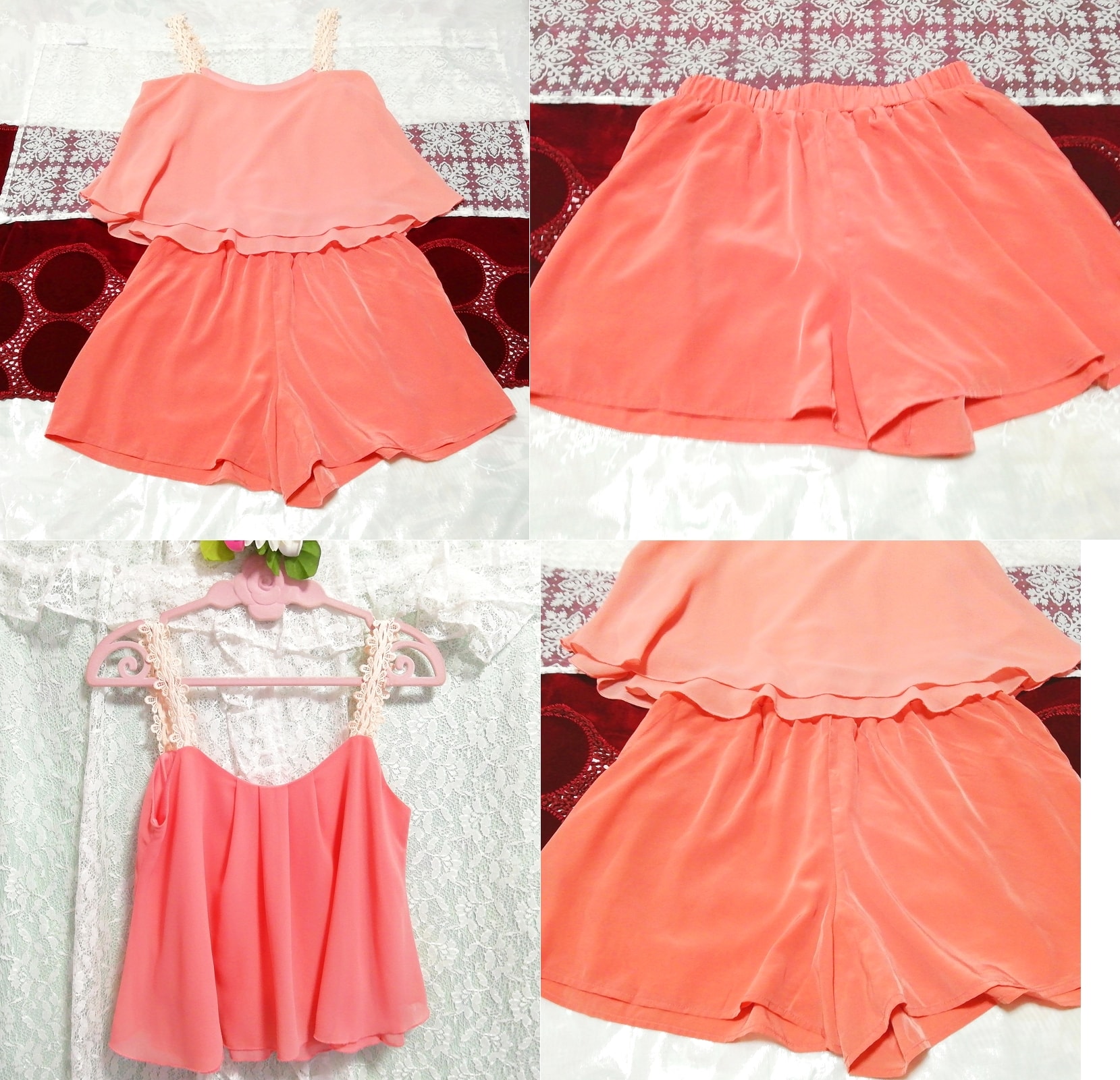 ピンクシフォンキャミソール ネグリジェ ナイトウェア ショートパンツ 2P Pink chiffon camisole negligee nightwear shorts