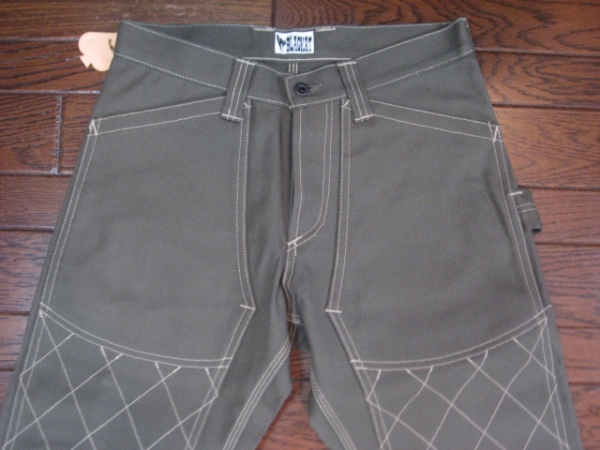 ダブルニー ダック ペインター パンツ S オリーブ ダイヤモンド ステッチ
