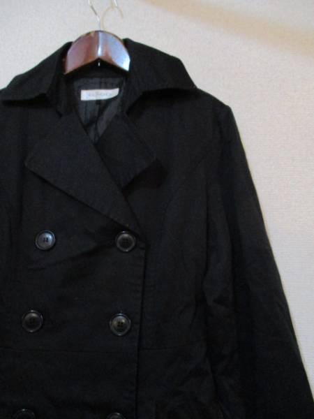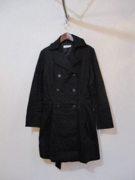 | 商品紹介 | 黒のトレンチコートです。 ウエストから下に左右1カ所ずつボックスプリーツが入っていて、 少しふんわりとした形です。 《素材》 表地:綿97% ポリウレタン3% 裏地:ポリエステル100% |