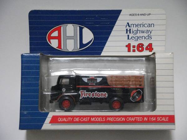コレクション整理のための出品です。 Firestone ファイアストン ONE STOP SERVICE ワンストップサービス トラック 1:64 AHL American Highway Legends DIE-CAST MODEL ダイキャストモデル 本体に底面に1992と記載があるので、1992年製と思われます。 パッケージにGMC General Motors Corporation からライセンスを受けていると書かれているので、車名はわかりませんがゼネラルモーターズのトラックと思われます。 パッケージの寸法 約170mm×約52mm×約142mm パッケージは古いものなので、スレ・汚れ等あり(写真参照) ※ Firestone(ファイアストン) は、Bridegestone(ブリヂストン)の子会社/ブランド名 | ||