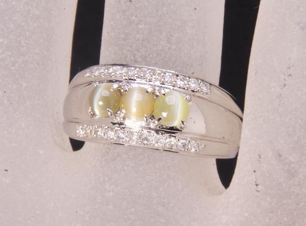天然クリソベリルキャッツアイの上品なデザインリングです。