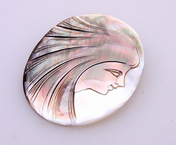 《質屋出品》洋銀製★天然シェルカメオのブロ-チ★k-4200