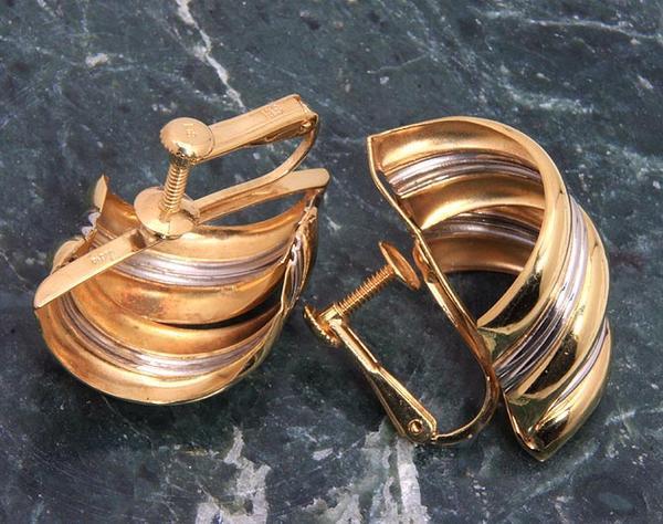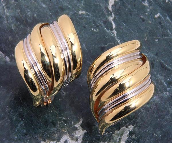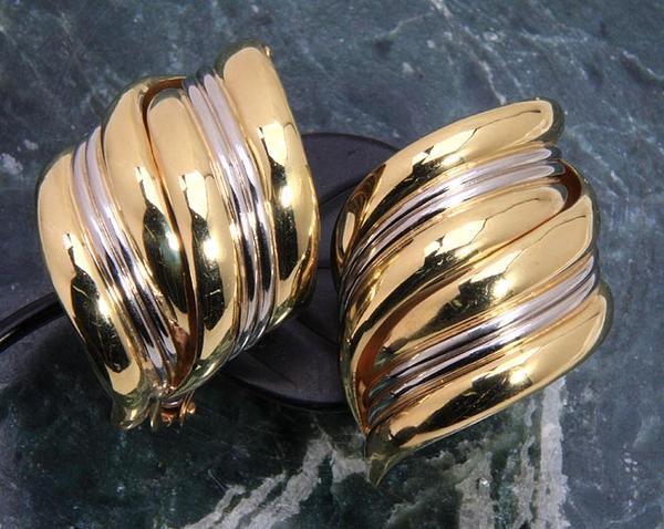 ゴールドとプラチナで作られた大き目のイヤリングです。