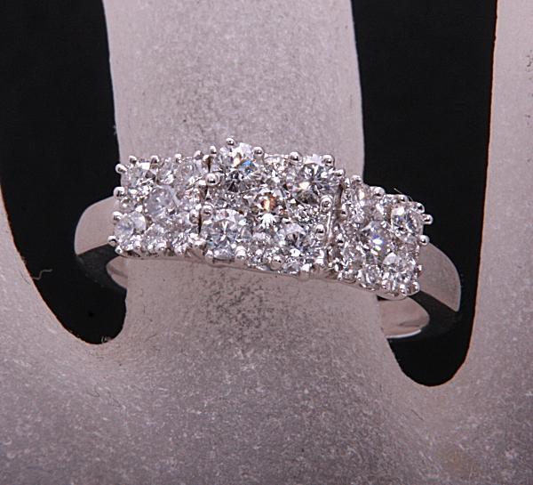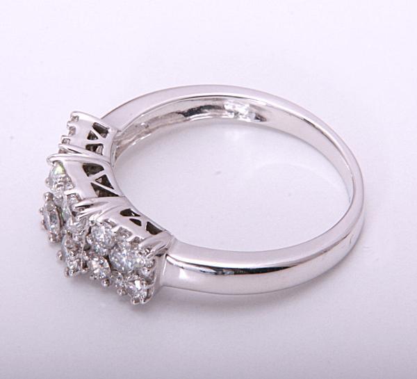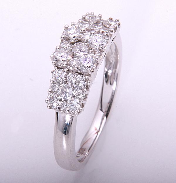 ラウンドカットのダイアが9石づつ3つの枠に留められていますが、