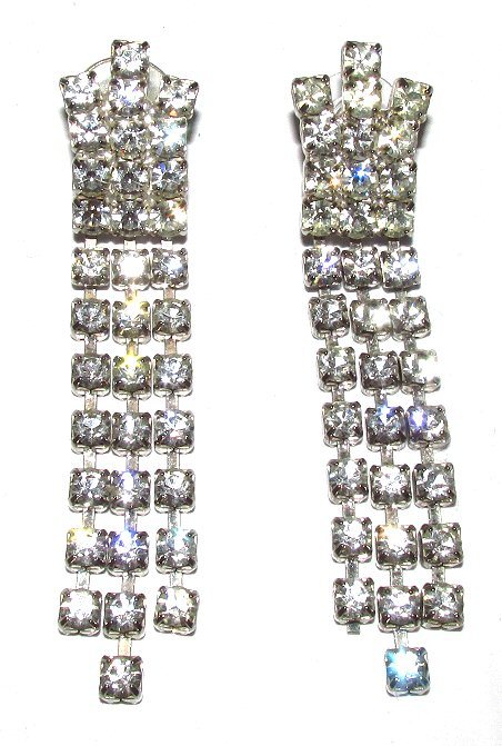 フル・ラインストーン・3連・フリンジ★ピアス★フォーマル系