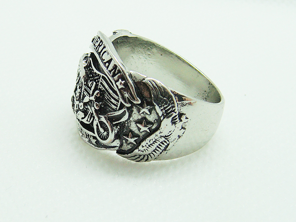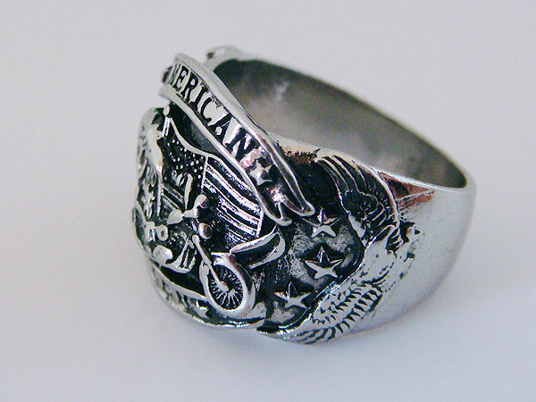 アメリカ国旗、イーグル、バイクが描かれています
