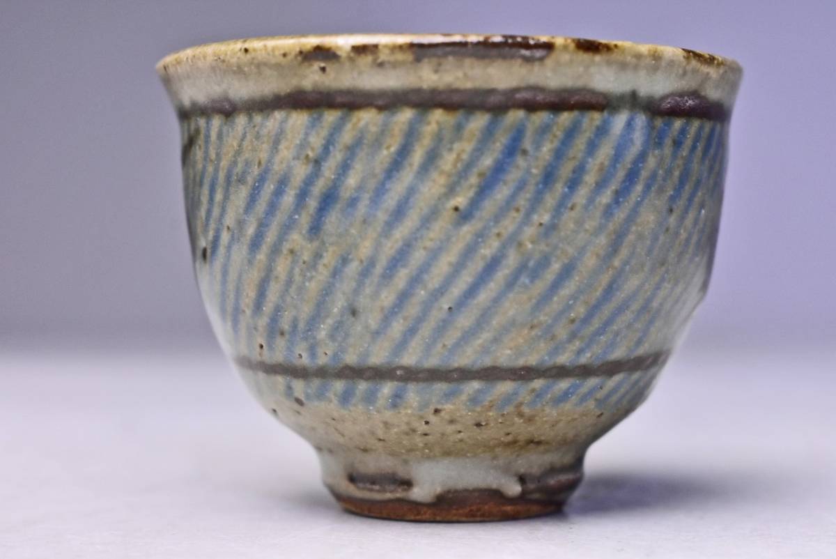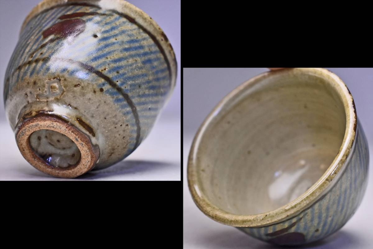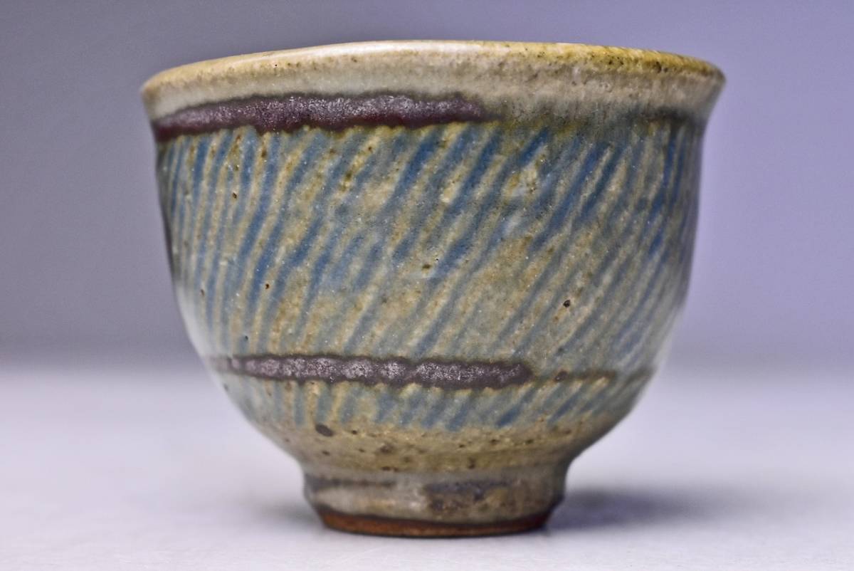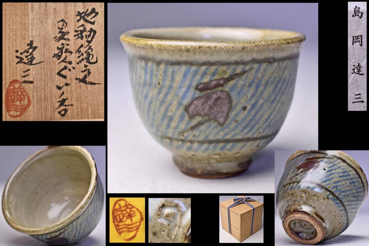 島岡達三 ★ 地釉縄文象嵌ぐい呑 ★ 共箱共布栞 ★ 人間国宝 ★ 浜田庄司に師事 ★ 酒器 ★