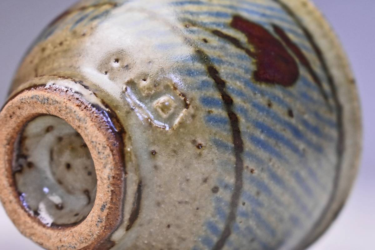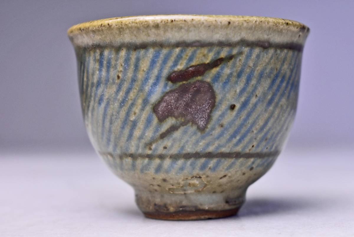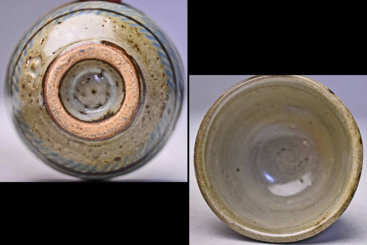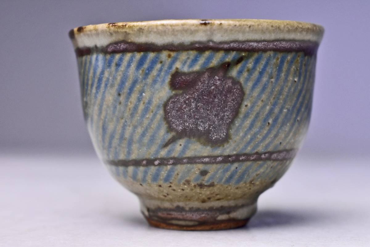 島岡達三 ★ 地釉縄文象嵌ぐい呑 ★ 共箱共布栞 ★ 人間国宝 ★ 浜田庄司に師事 ★ 酒器 ★