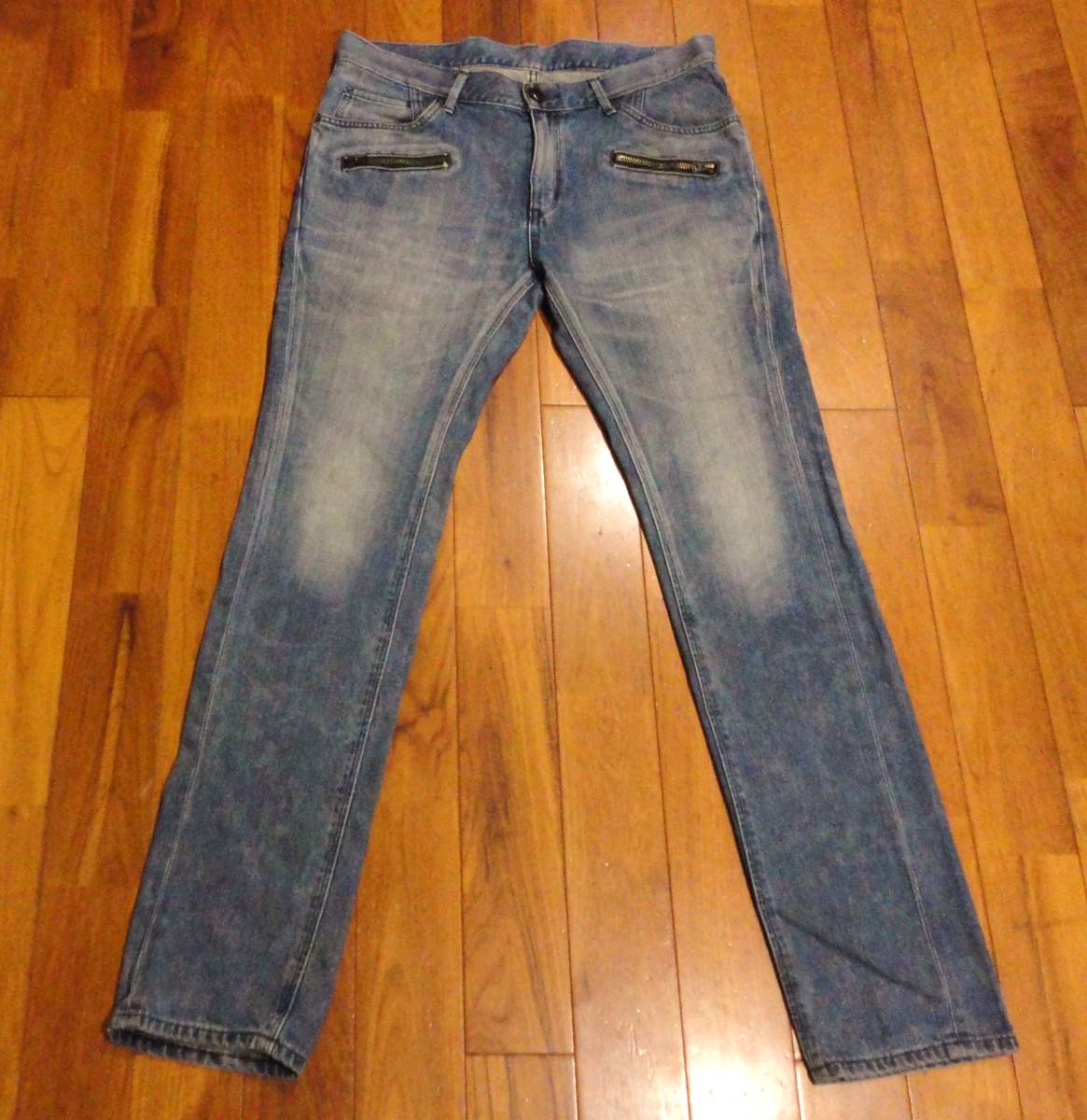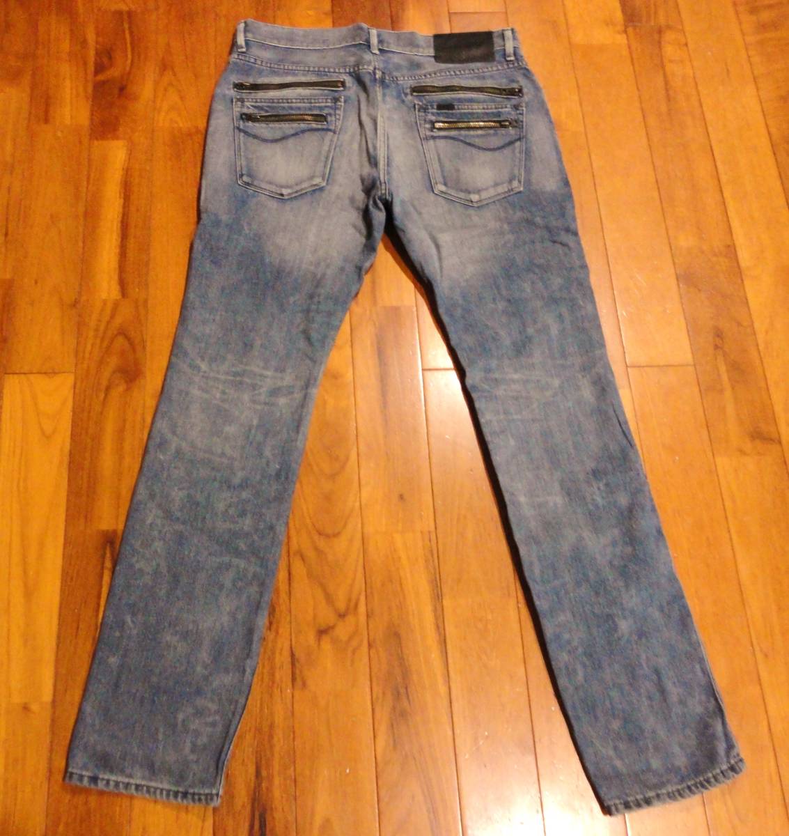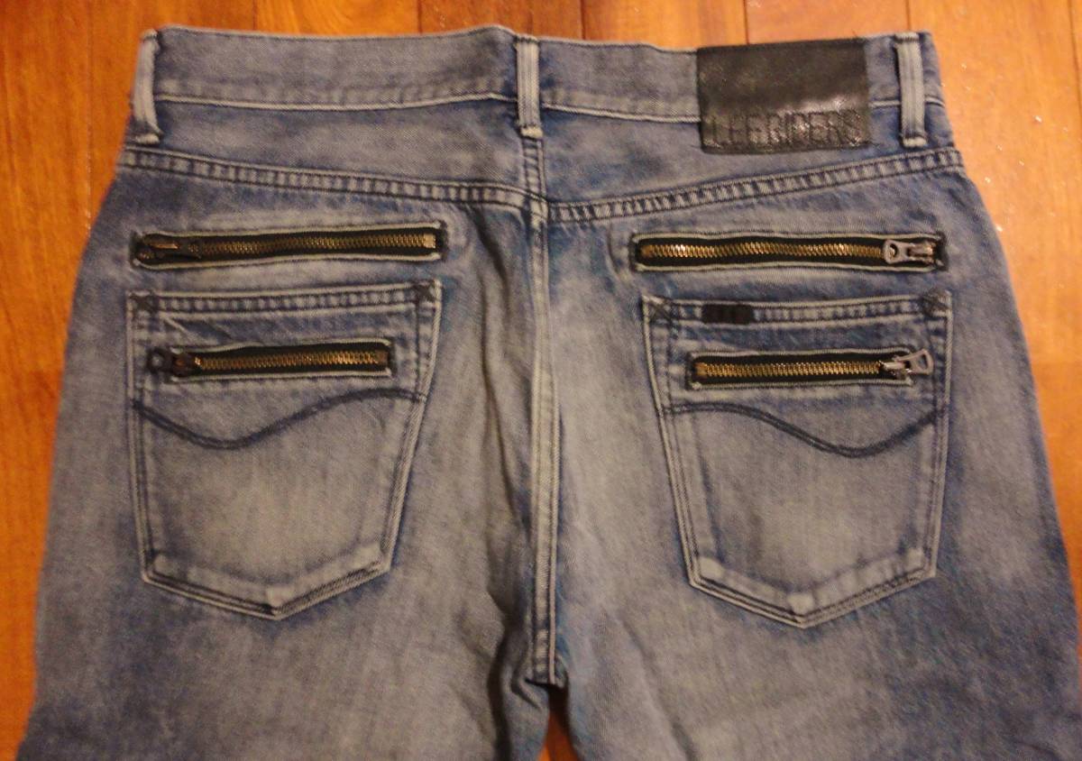 リーライダースのデニム(ジーンズ)、LM3655 BLACK RIDERSⅡです。色はインディゴブルーです。USEDですが状態は良いです(10段階中8程度)。生地は綿100%です。牛革パッチ、ジッパーフライ、チェーンステッチです。正規品です((株)エドウイン商事、中国製)。サイズはLでウエストは重ねずに平置きで約90cm、ヒップ約107cm、股上約27cm、股下約83cm、股下15cmのふともも部分約49cm、裾まわり約37cm、重量約700gです。発送はゆうパケットポストになります。