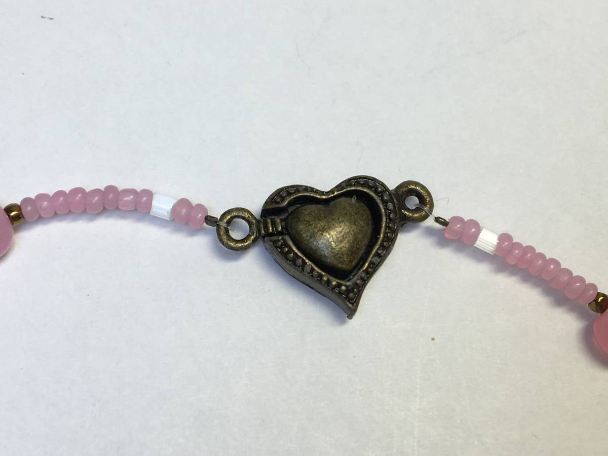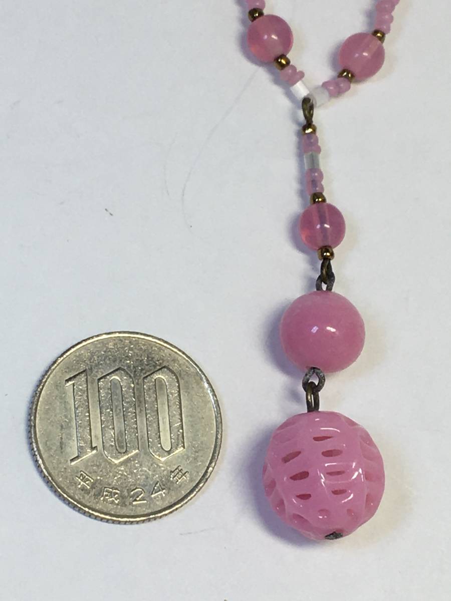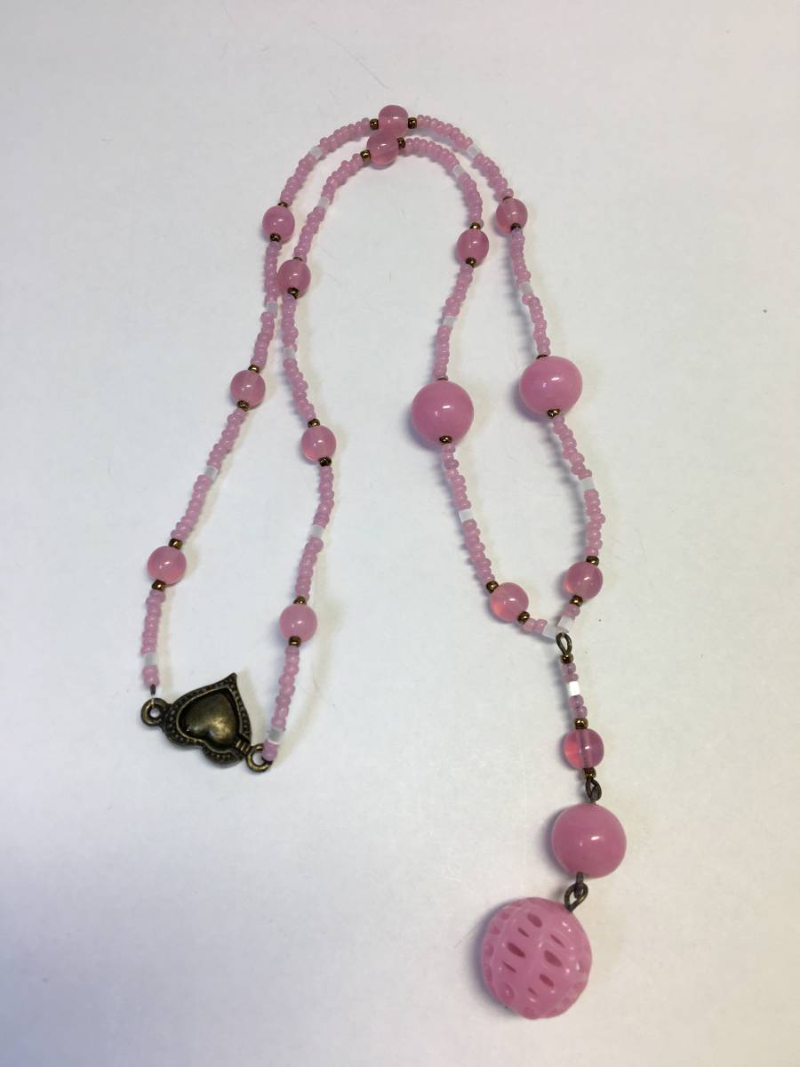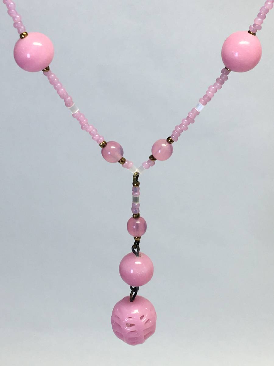 ピンクの透かし模様アンティークビーズのネックレス