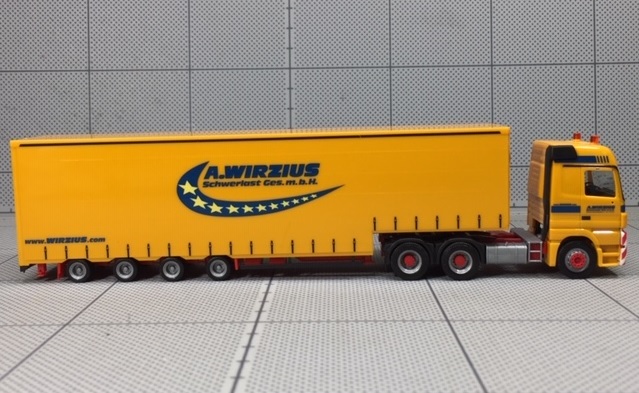 1/87 Herpa MB Actros LH '02 Jumbo Curtainside Trailer "A. Wirzius"