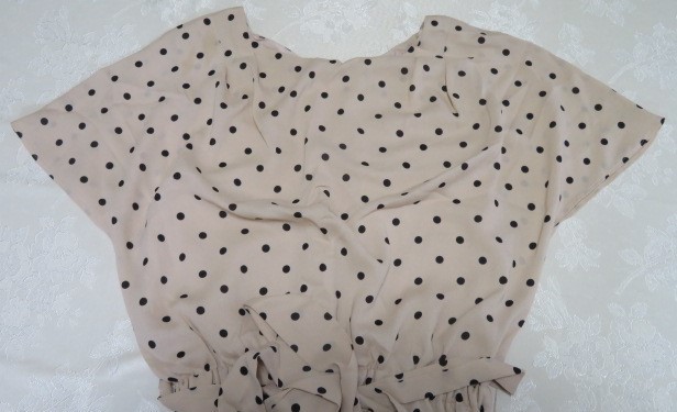 サイズはM、実寸は平置きで総丈91cm、バスト44cm、袖丈12cmになります。