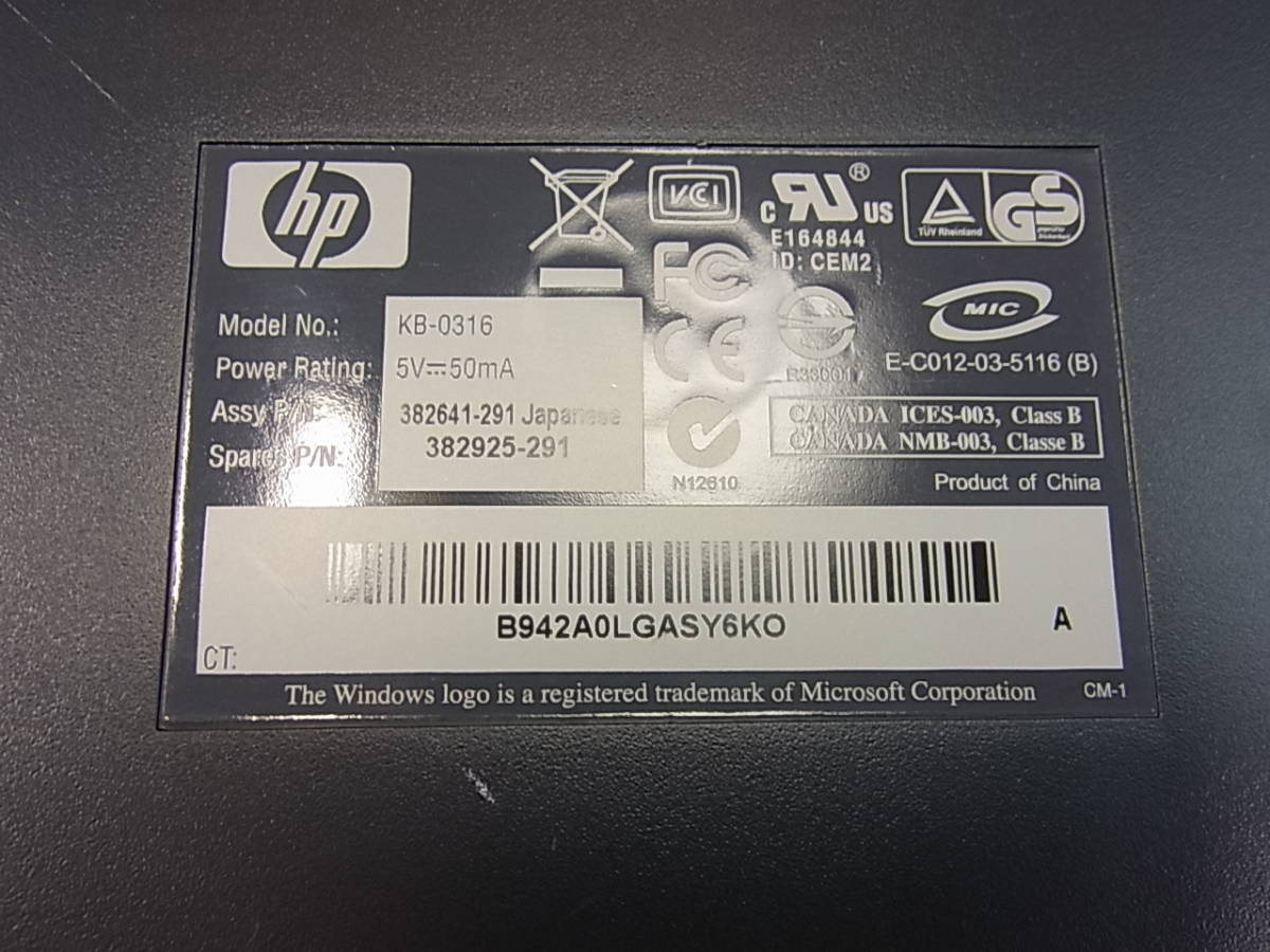 | □Yb/515☆ヒューレット・パッカード hp☆PS/2キーボード☆KB-0316☆動作不明☆ジャンク | |