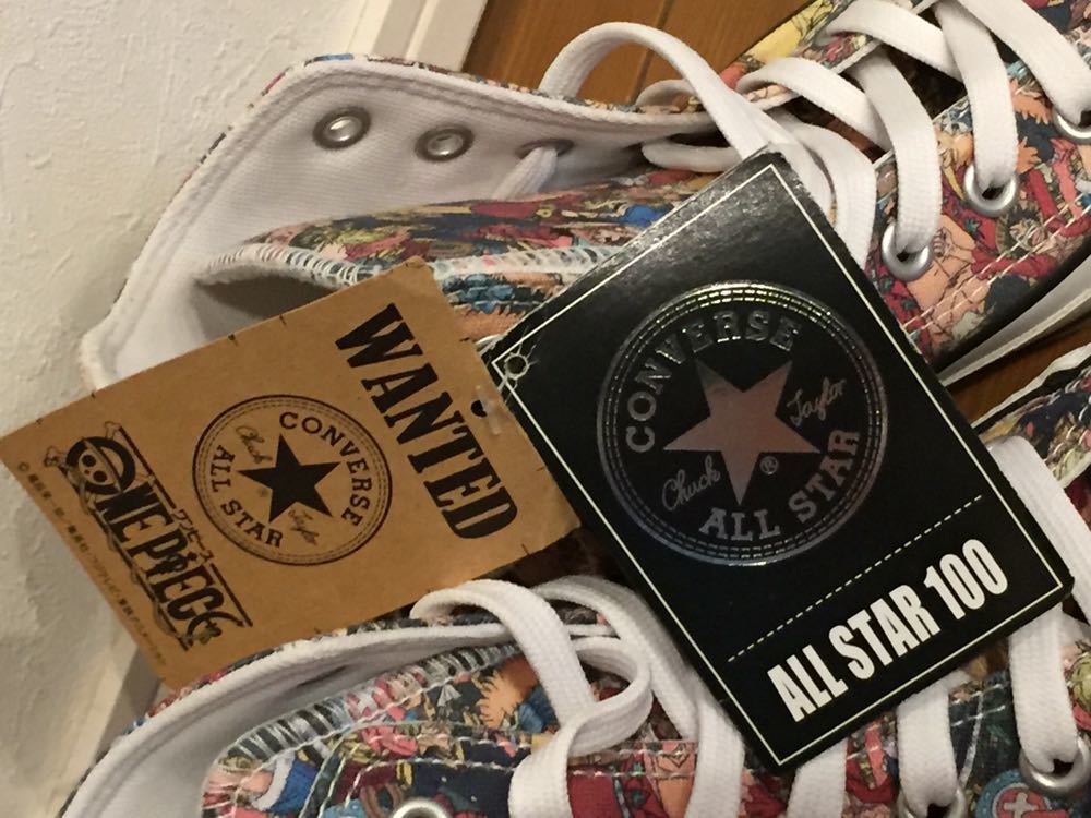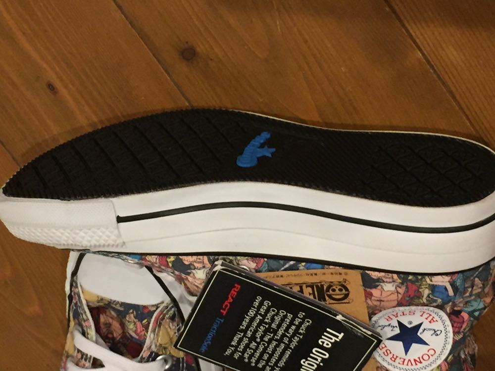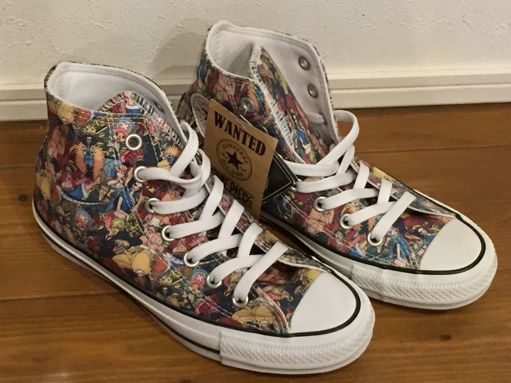 ワンピースとコンバースのコラボ総柄スニーカーです。丁寧に描かれていてとてもかわいいです。箱はないですが新品未使用になります。即決早い者勝ちの送料無料です。