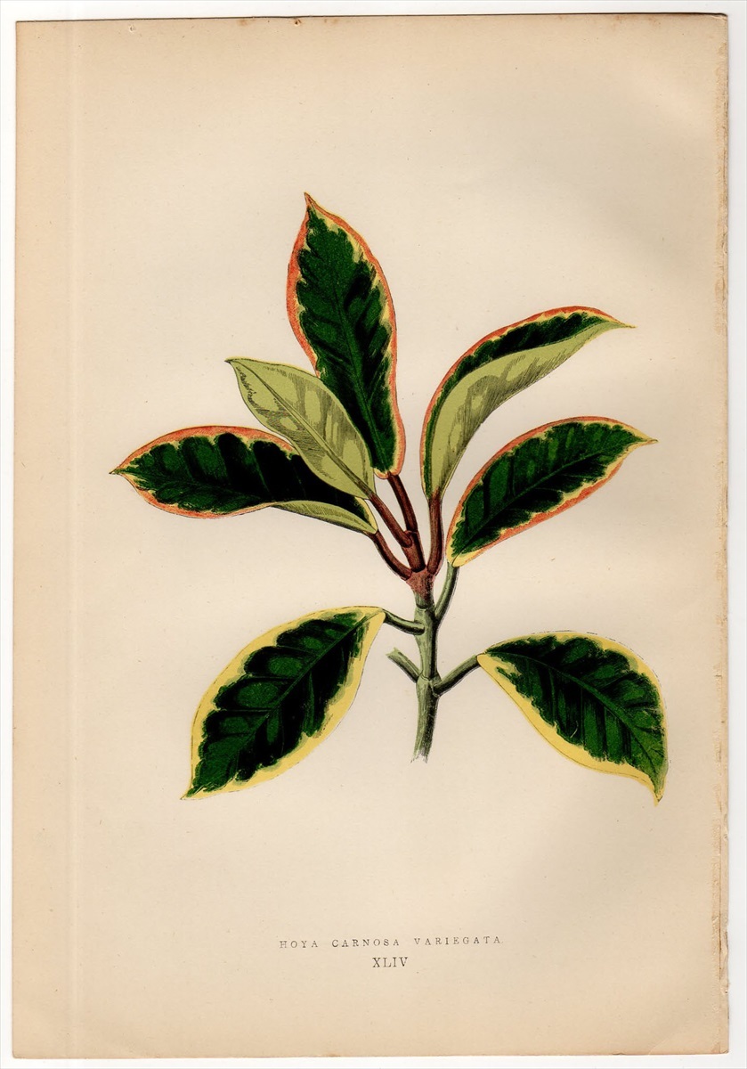 1872年 Lowe 多色刷木版 BEAUTIFUL LEAVED PLANTS Pl.44 キョウチクトウ科 サクララン属 サクララン HOYA CARNOSA ワックスプラント