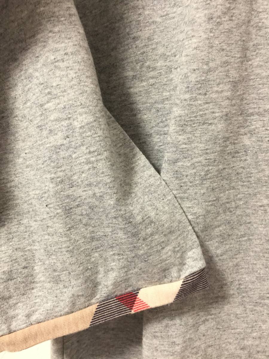 襟元、袖先をバーバリーチェックでパイピングした七分袖のTシャツカットソーです。ストレッチがあり楽に着用できます。一枚でもジャケットのインにも重宝に着用していただけます。