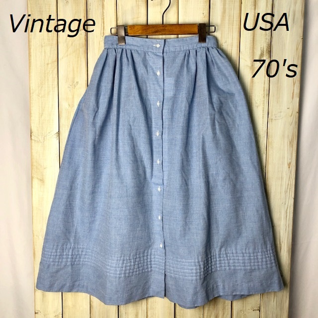 USA古着 70's USA製 シャンブレー ロングスカート 10 アメリカ古着 ヴィンテージ オールド ●41