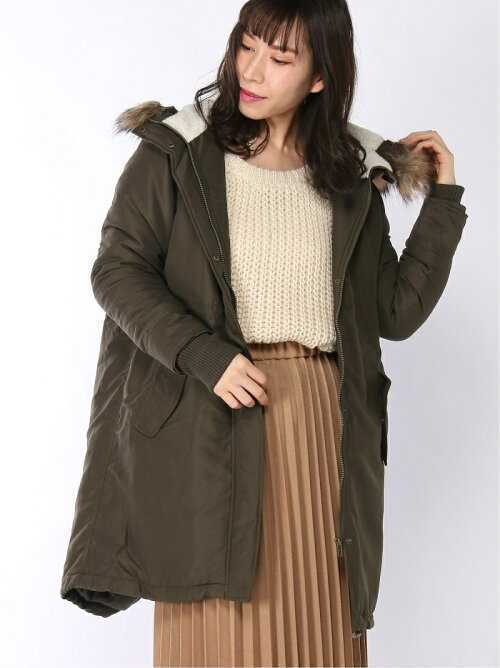 ★未使用 新品 レディ-ス ジャケット フェイクファー モッズコート M カーキー コート 冬 服 レディースファッション 上着 ダウンコート