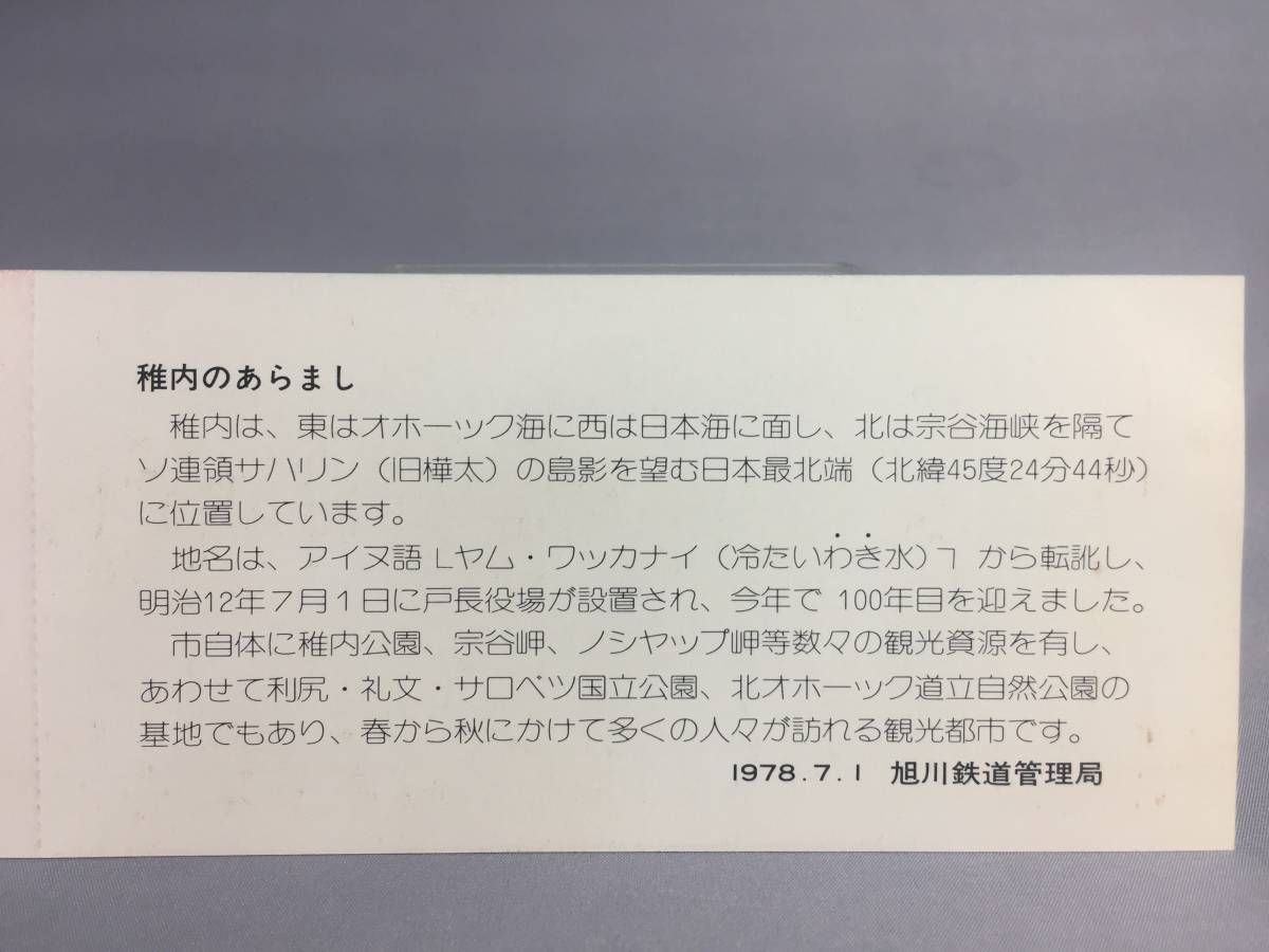 国鉄・旭川鉄道管理局 昭和53年7月1日 稚内市開基100年・市制施行30周年記念 急行券1枚 【K14-0044】