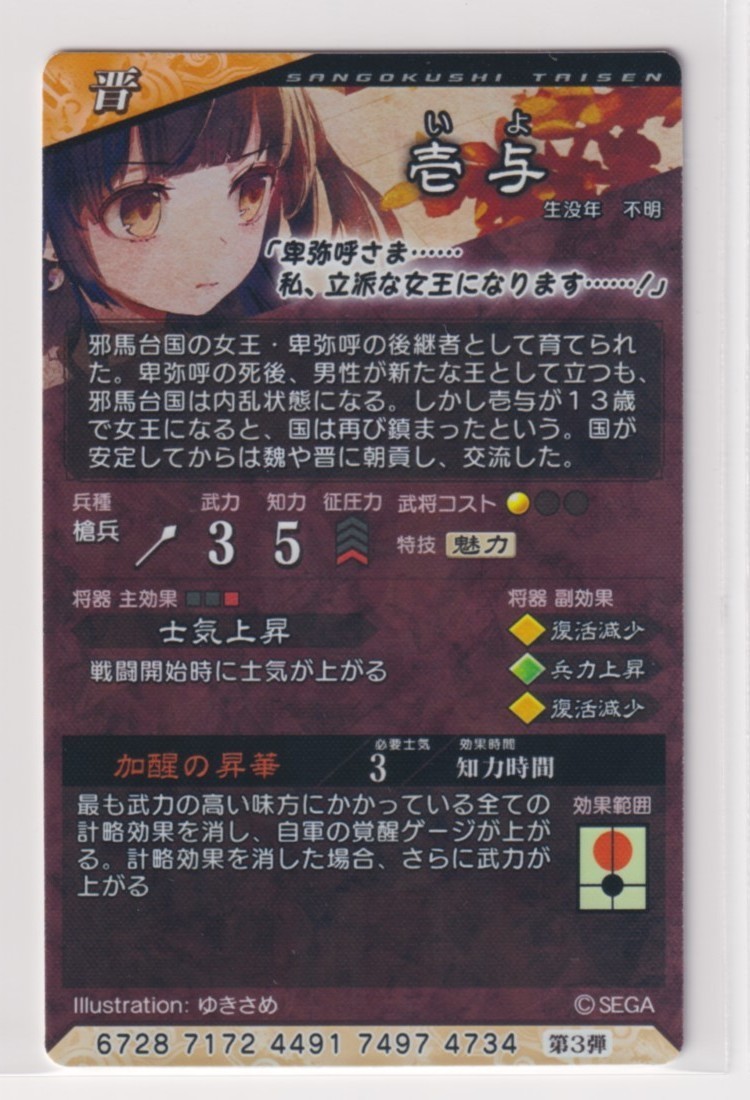 三国志大戦5 晋 3弾 R 壱与 加醒の昇華 士気上昇 コレクション用