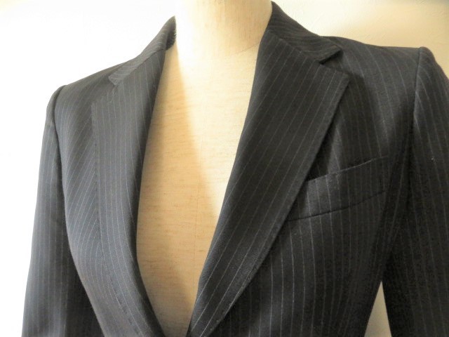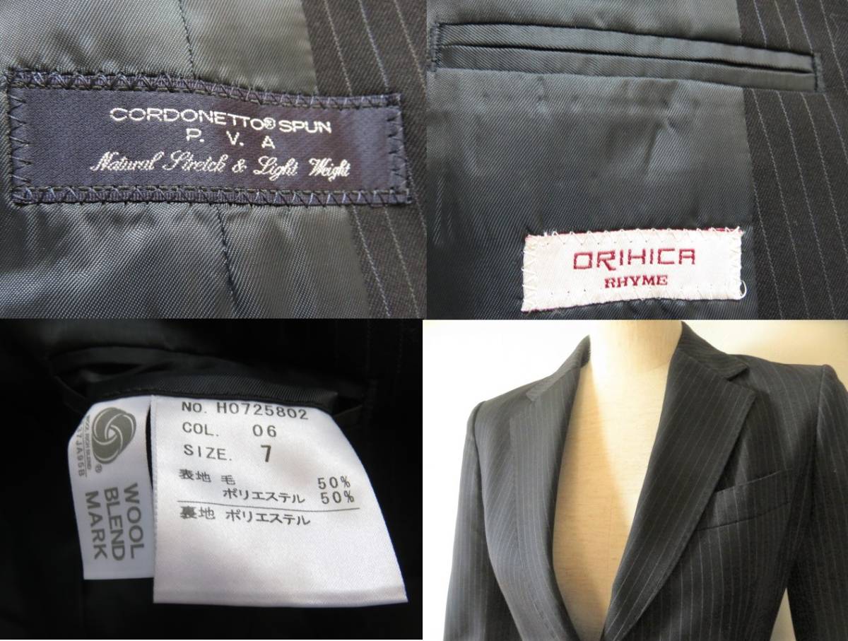 ■新品同様 上質美品【ORIHICA】オリヒカ「RHYME ライム」高級 パンツ スーツ 7号 9号 S M 濃紺 ストライプ 就活スーツ s915