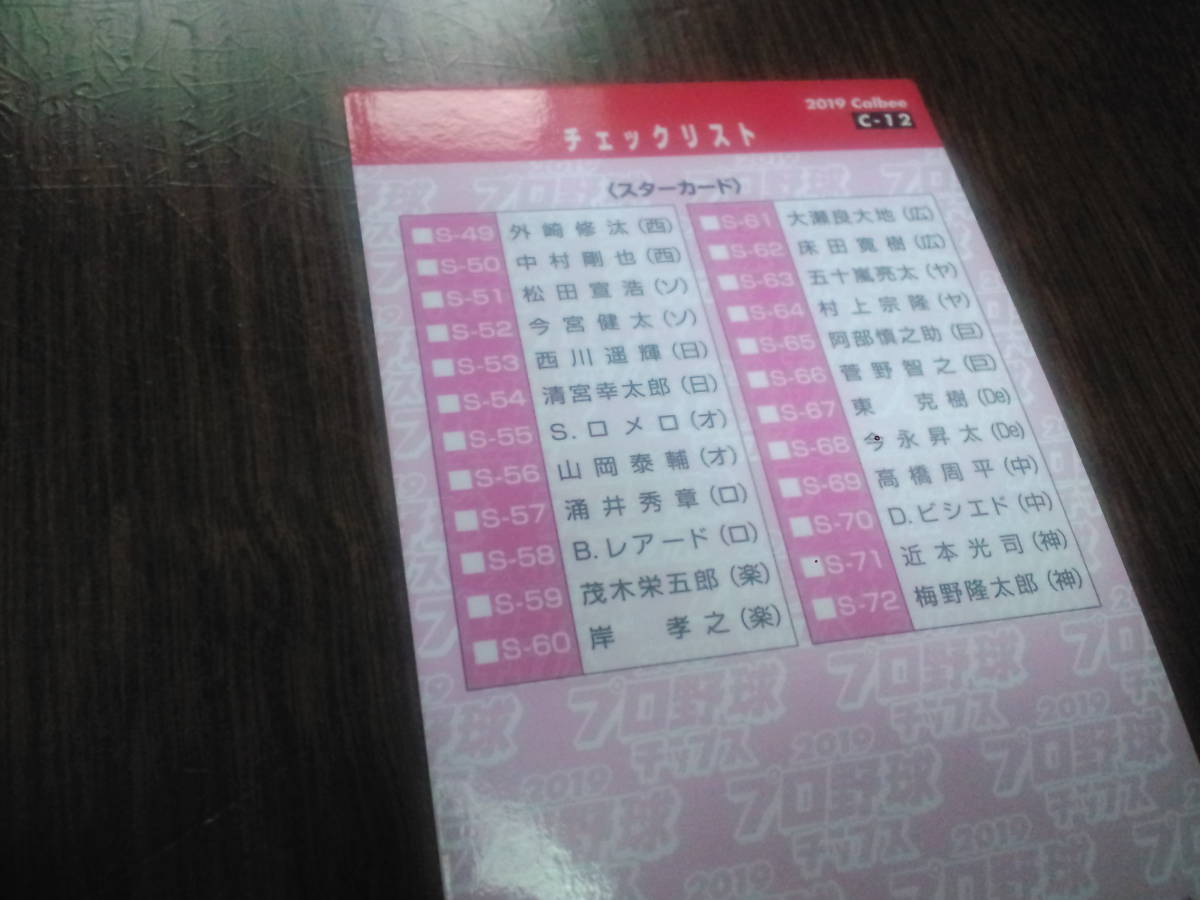 ☆チェックリストカード(C-12)2019年カルビープロ野球カード第3弾☆