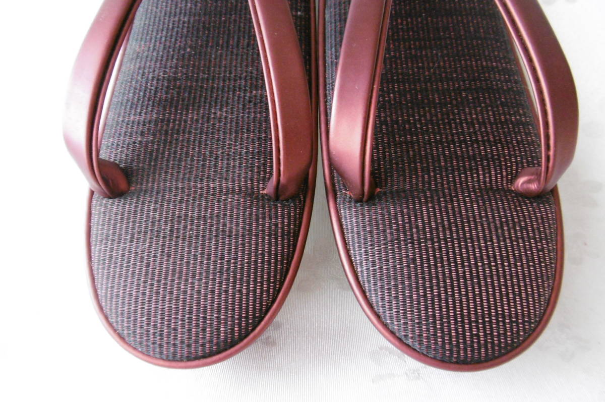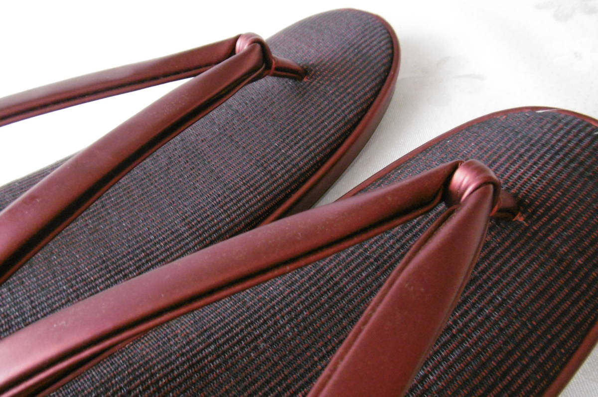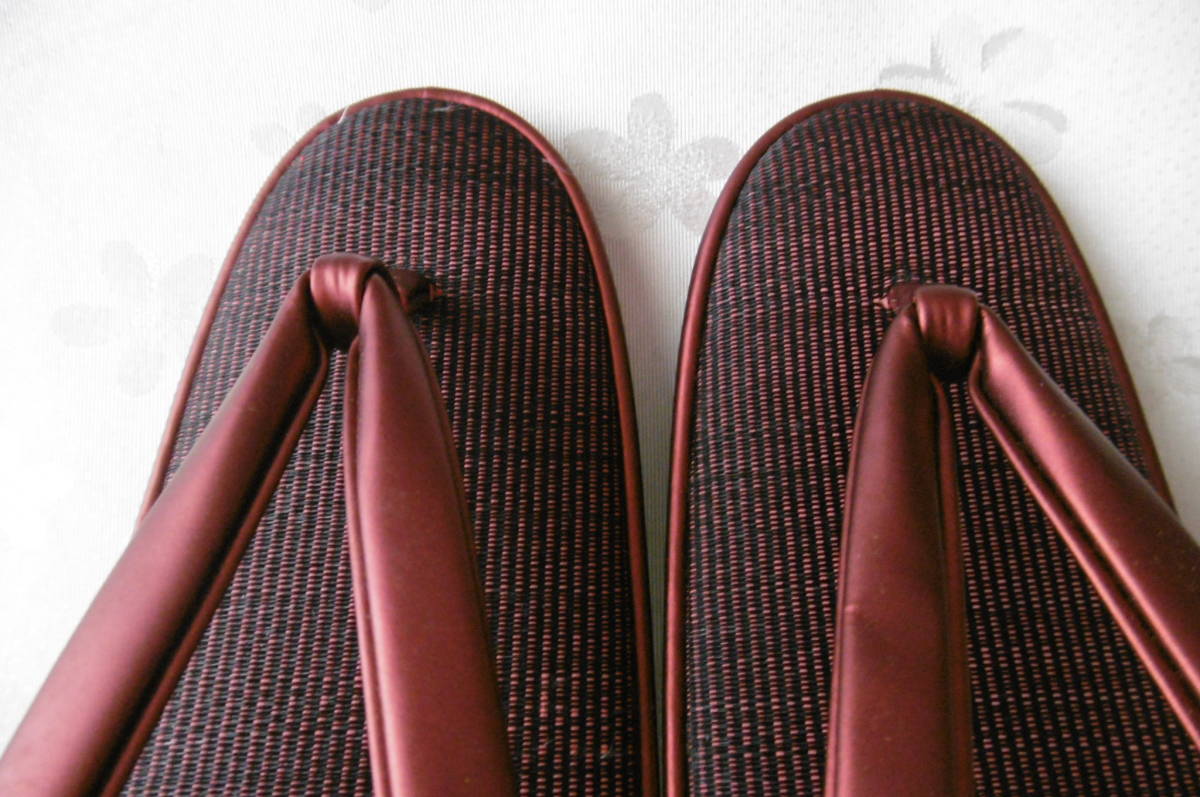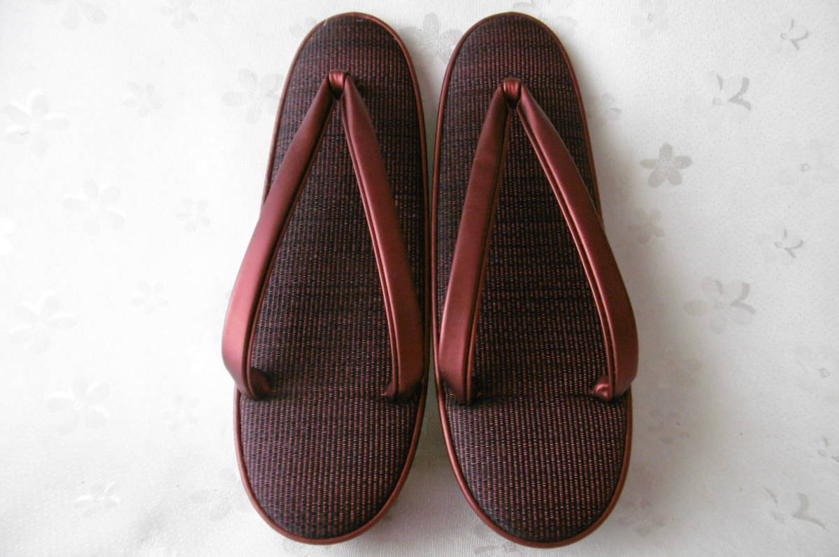 | ★ 商品名 *未使用訳あり★草履★本革製品?合成皮革?★赤銅色&細かい縞柄★ぞうり★着物 和物★Mサイズ23cm★4469 |