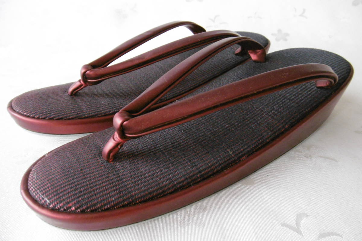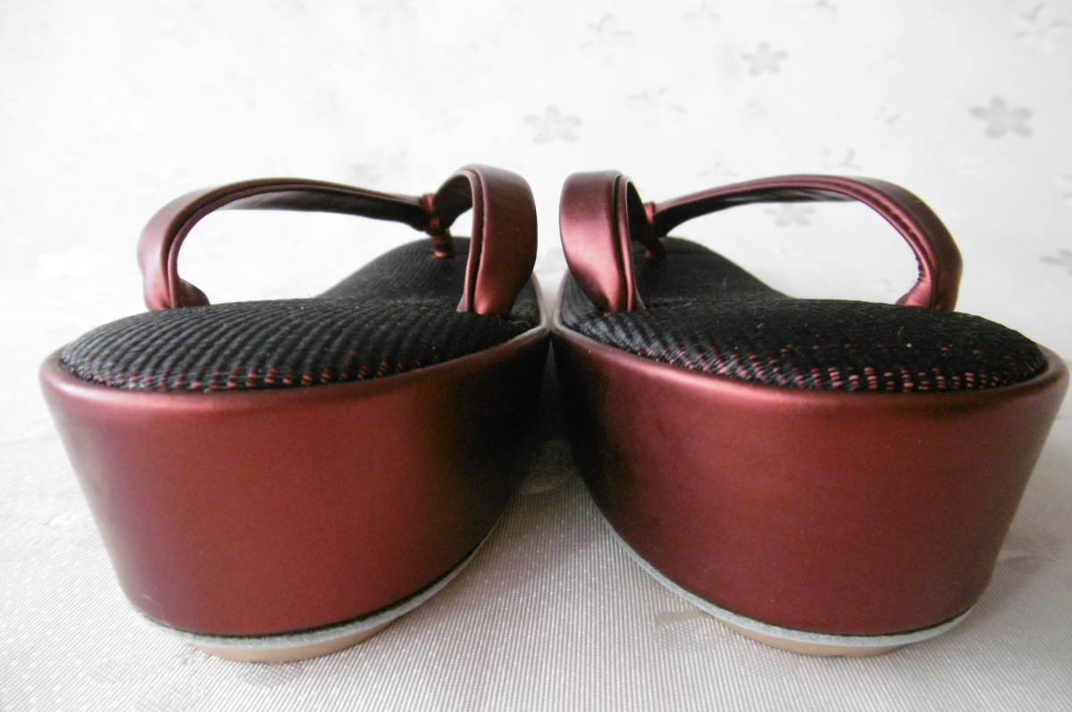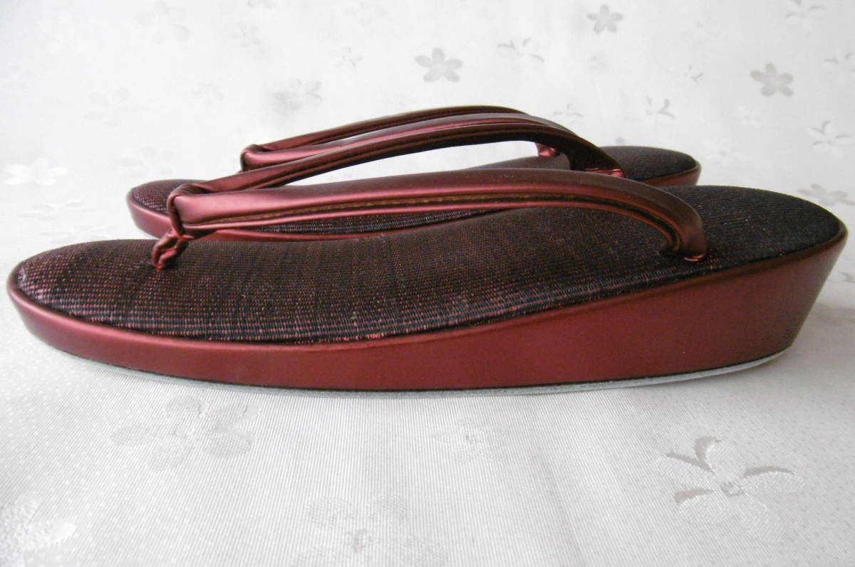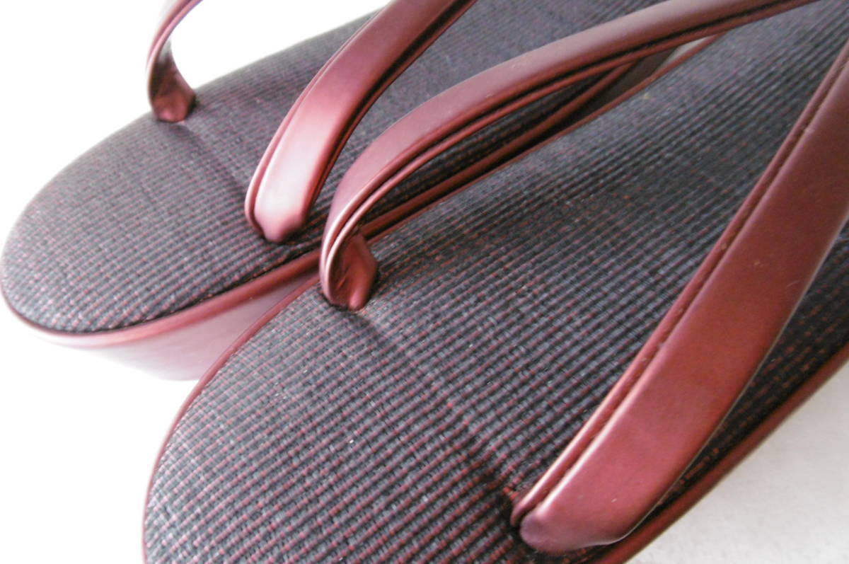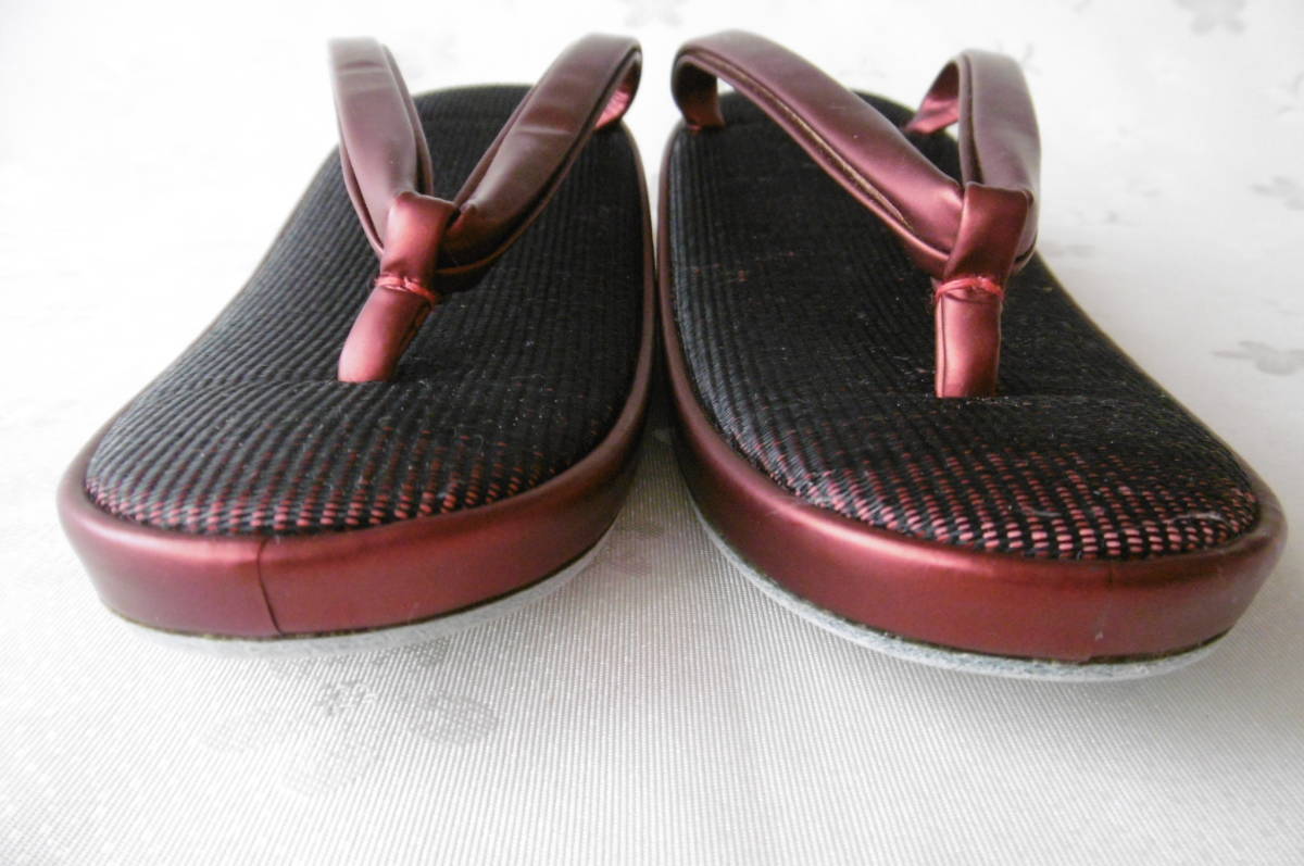 | ★ 商品名 *未使用訳あり★草履★本革製品?合成皮革?★赤銅色&細かい縞柄★ぞうり★着物 和物★Mサイズ23cm★4469 |