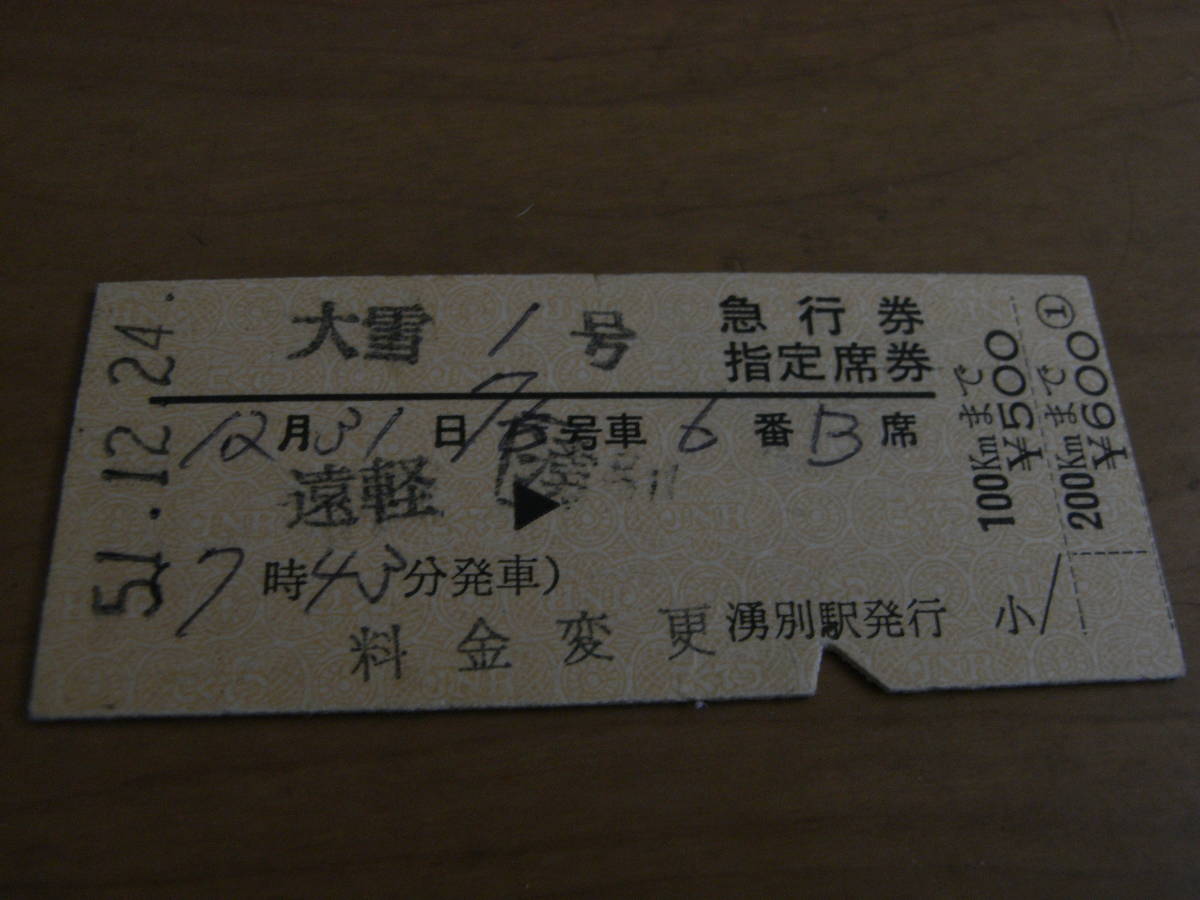 大雪 急行券 指定席券 遠軽→ 昭和51年12月24日 (名寄本線)湧別駅発行