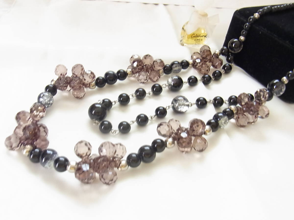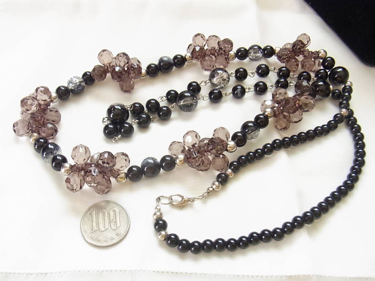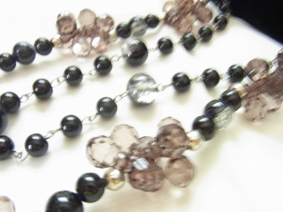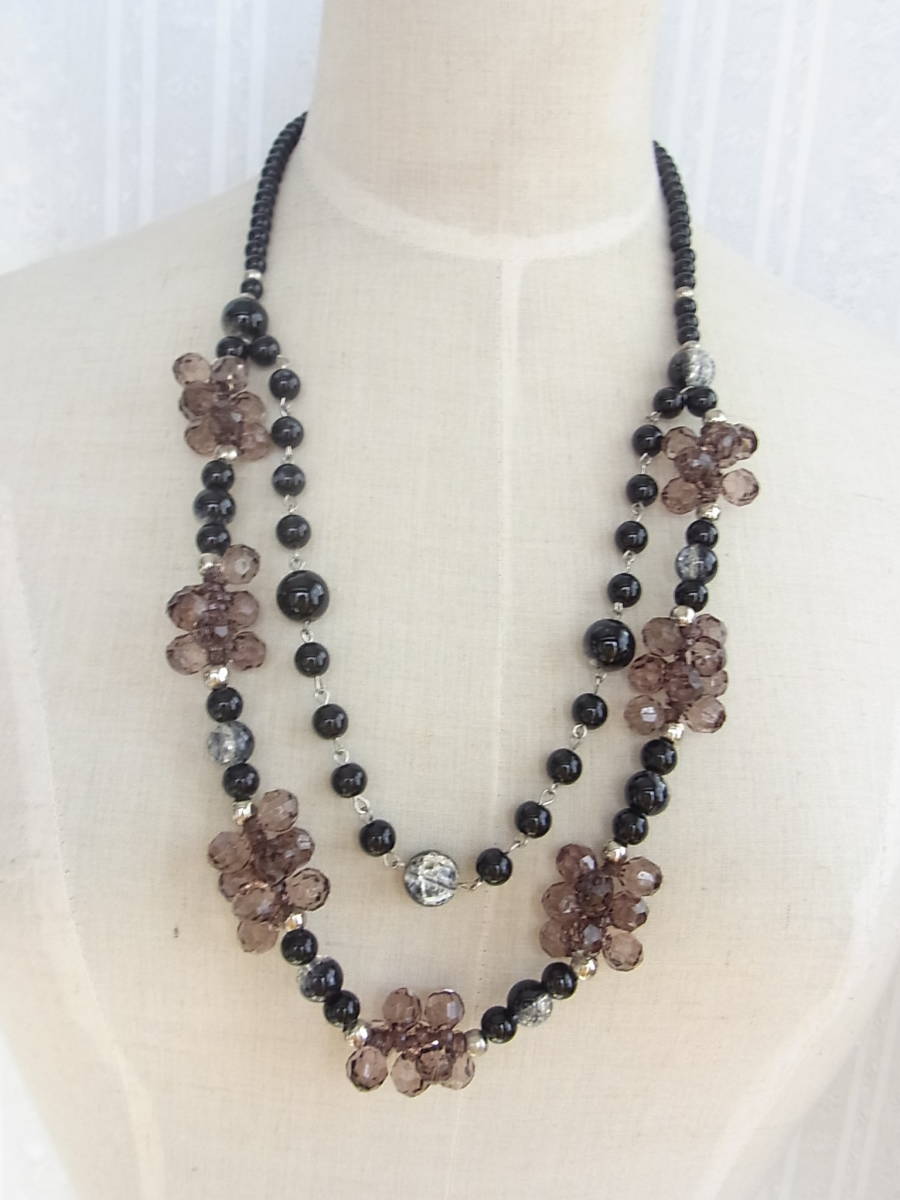 ブラックと薄いパープルブラウン系シルバー系の差し色がお洒落 ガラス調にボールビーズストーン 2連調 ネックレス◇◇