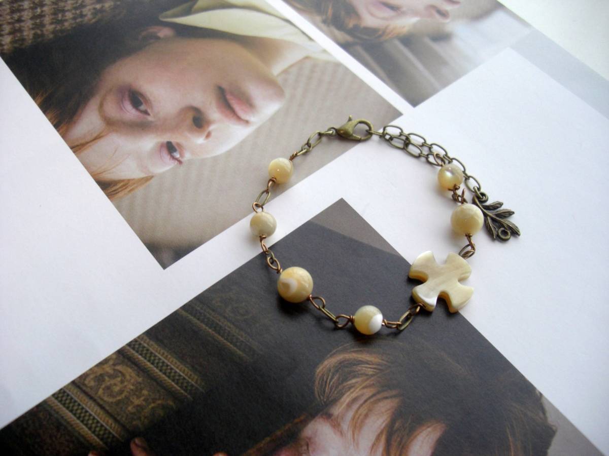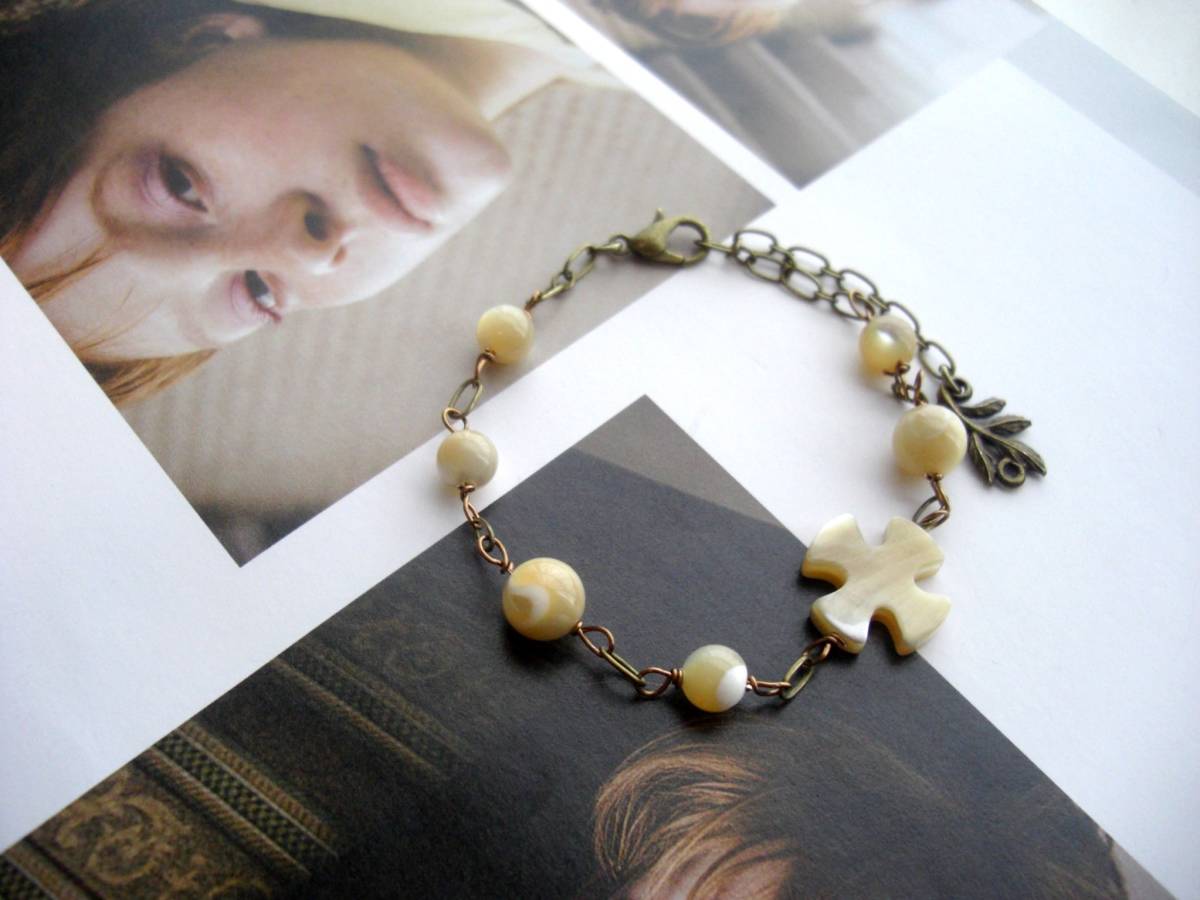 大人色のパンク・・シリーズです♪シックなマザーオブパールのブレスレットです♪♪6 ミリから15ミリ位の丸玉、クロスなど大きさ違い、デザイン違いを繋いで甘すぎないロマンチックな表情です♪15ミリのクロスや丸玉のブレスレットは全長23センチ位で調節出来ます♪お揃いの シリーズも出品しています♪♪ハンドメイドをご理解いただいてノークレーム・ ノーリターンでお願いします♪